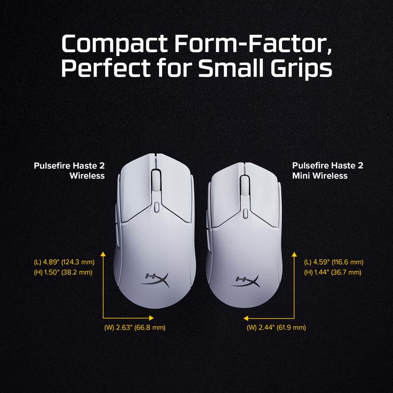 All the goodness of the Pulsefire Haste 2 Wireless, 1/6th less space! Featuring the same HyperX high-performance custom components, built for gamers with smaller hands, or who prefer smaller mice.