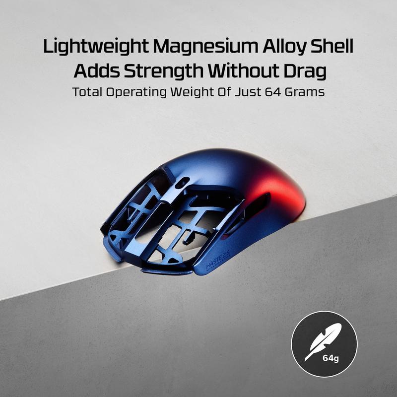 Pulsefire Haste 2 S utilizes a durable magnesium-alloy structure to achieve the perfect balance of strength and agility. Measuring in at just 64 grams, the solid-shell design maintains rigidity without excess weight.