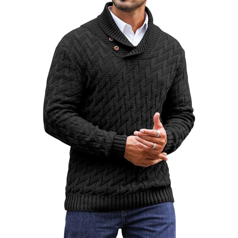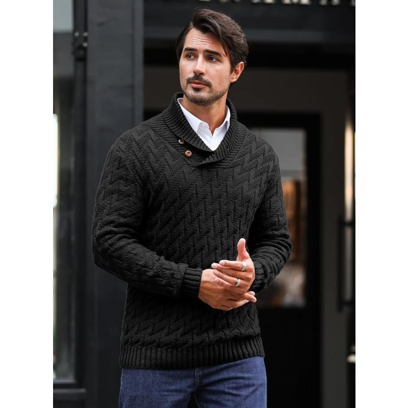 5. HYPESTFIT Men’s Cable-Knit Mock Neck Sweater – Buttoned Pullover for Fall & Winter