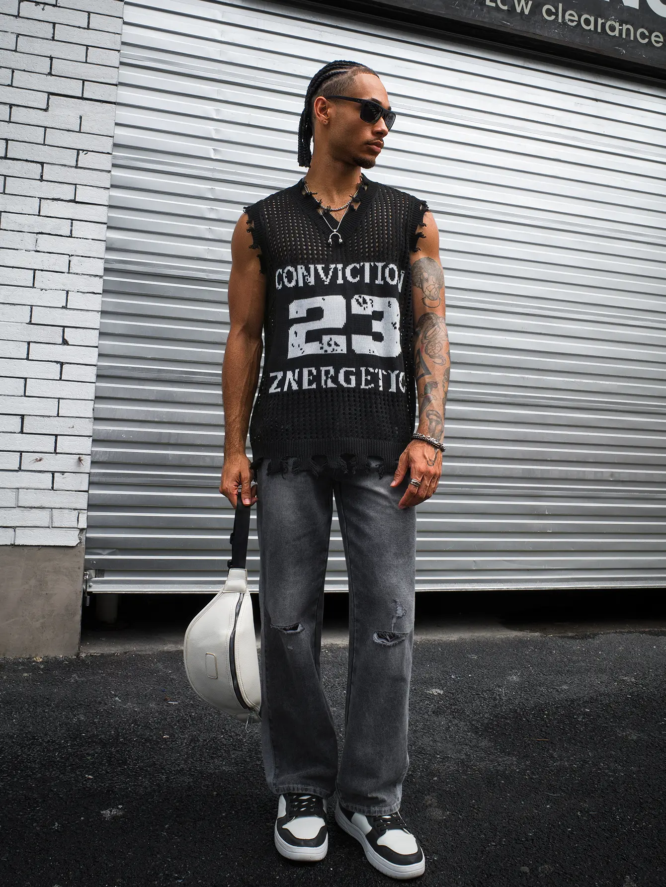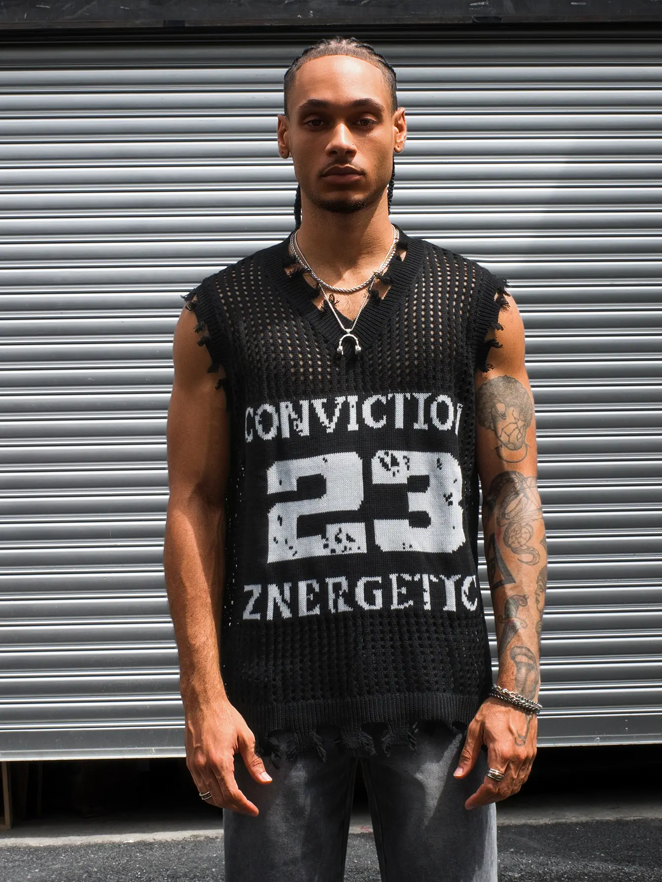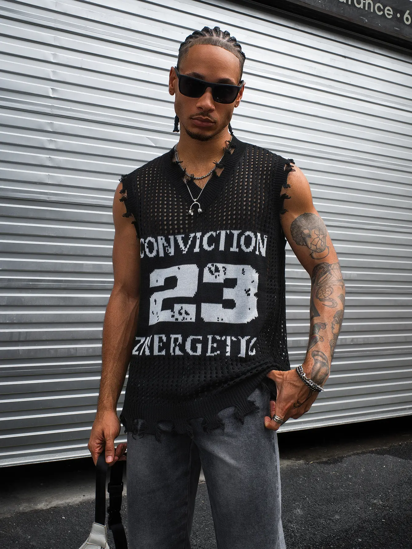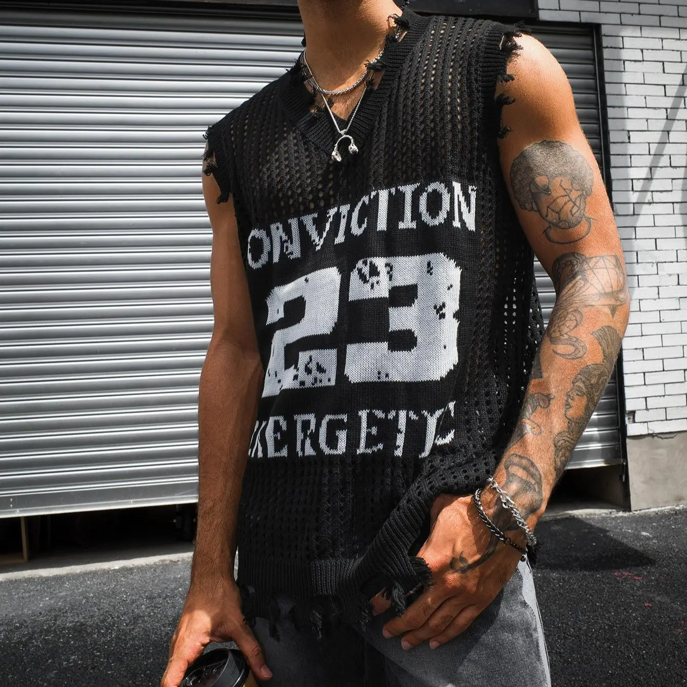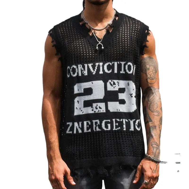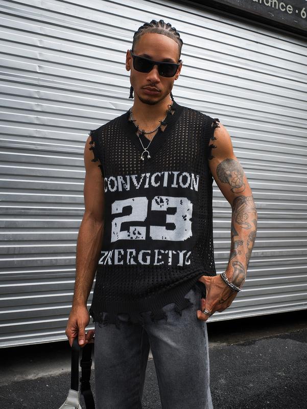 HYPESTFIT Men's Number Sleeveless Knit Top Distressed V-Neck Open-Knit Tank Loose Fit Army Green Fashion KnitwearHYPESTFIT Men's Number Sleeveless Knit Top Distressed V-Neck Open-Knit Tank Loose Fit Army Green Fashion KnitwearHYPESTFIT Men's Number Sleeveless Knit Top Distressed V-Neck Open-Knit Tank Loose Fit Army Green Fashion Knitwear