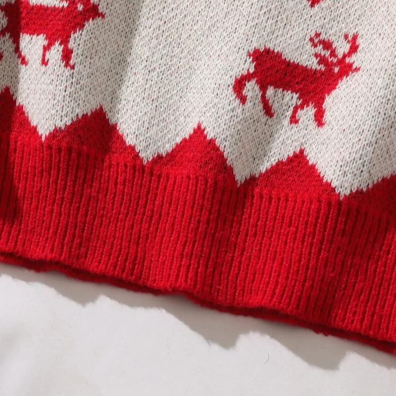 HYPESTFIT Unisex Christmas Elk Pattern Knit Sweater Fitted Crewneck Long Sleeve Pullover for Couples Festive Winter Outfit Cozy Knitwear Medium