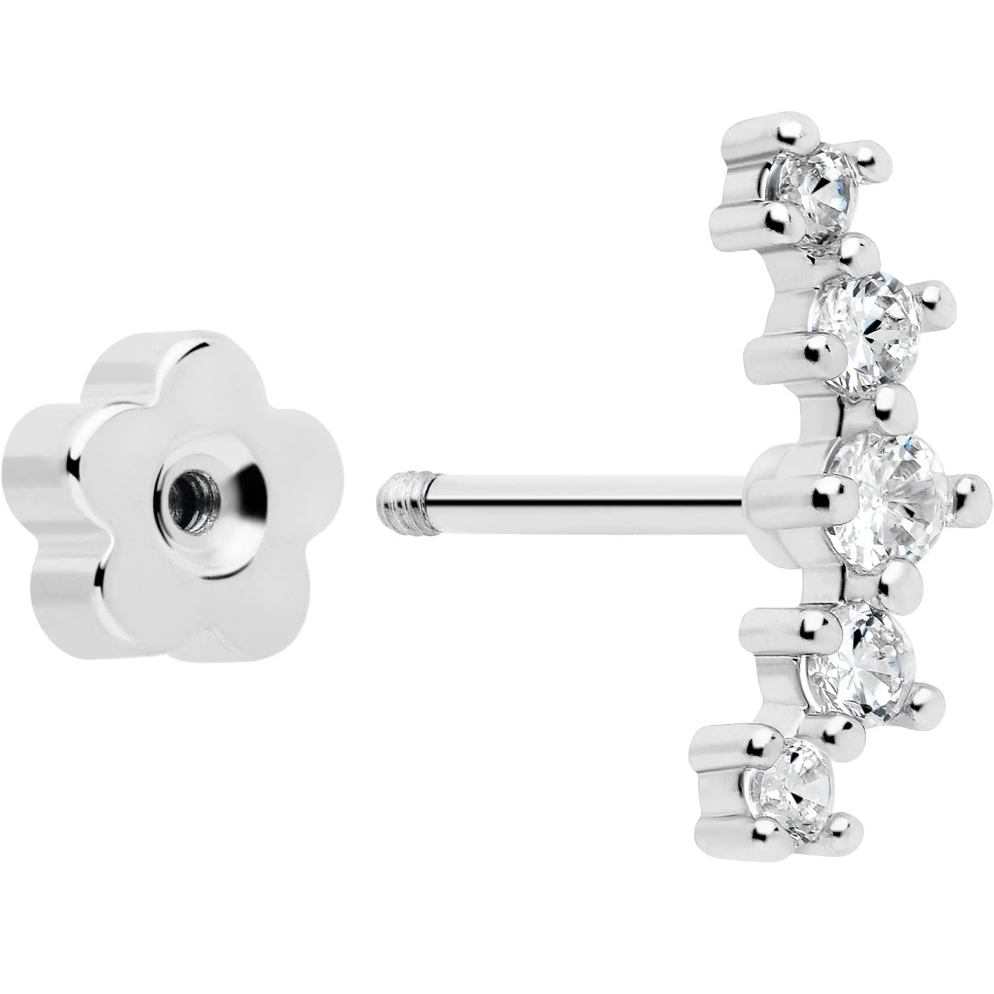 20 Gauge CZ Gem Ball Arch Butterfly Reversible Flower Flat Back Earring Set of 6