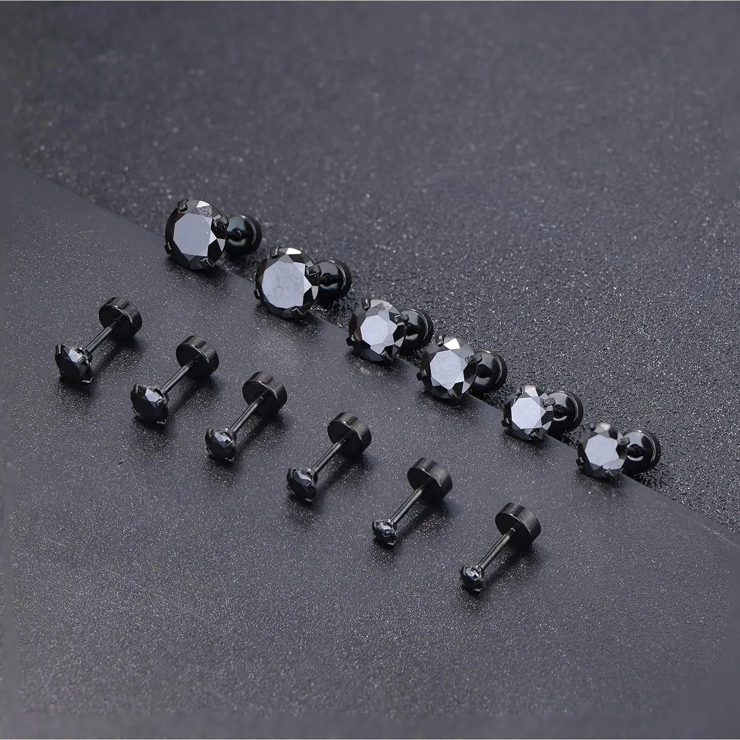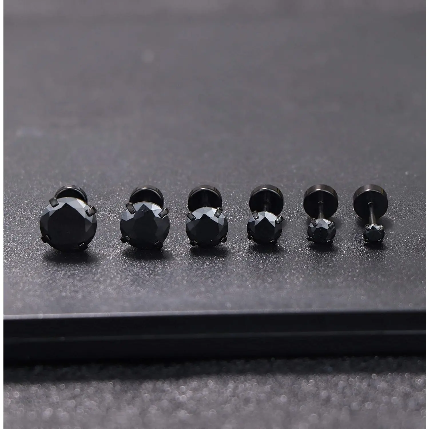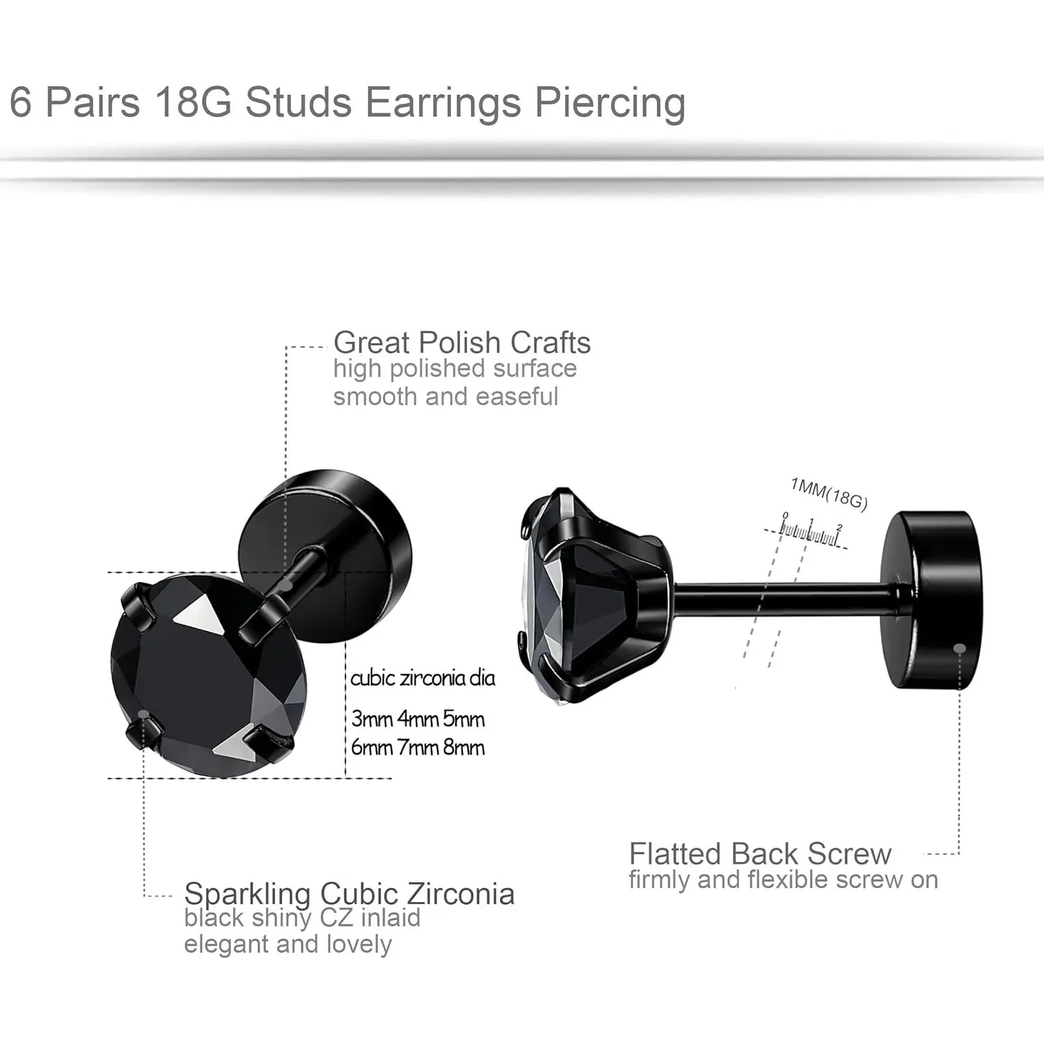 ·1 Set=6 Pairs, Comes With 6 Different Sizes Black Stones,3MM-8MM are Available, More Choices for Daily Wear, Fancy Gifts to Your Friends or Families