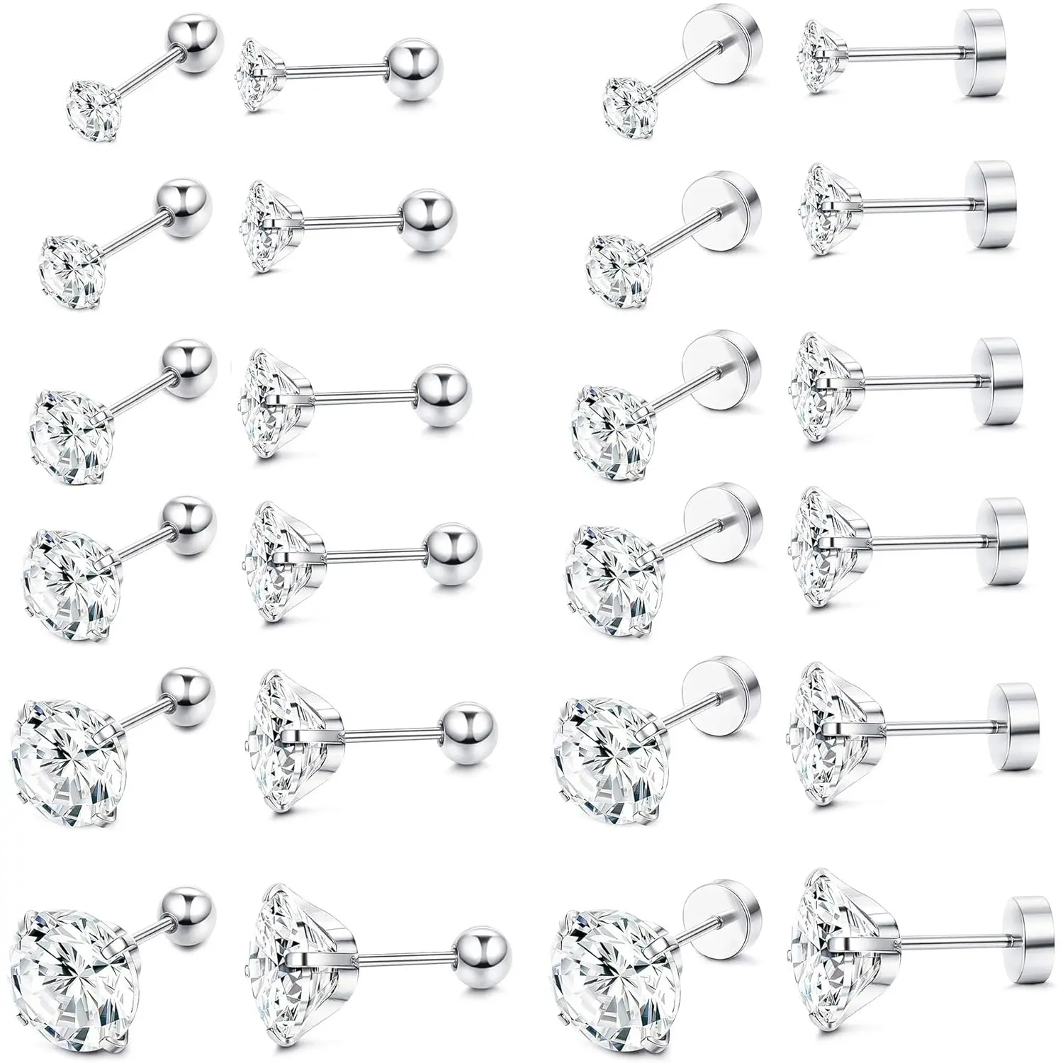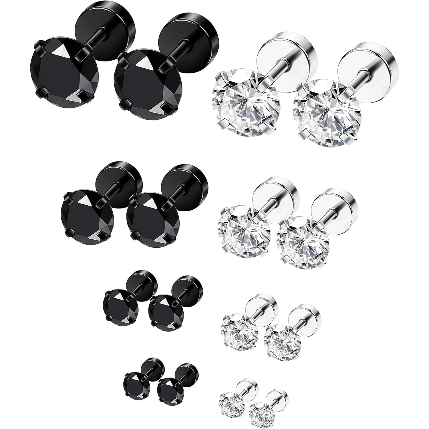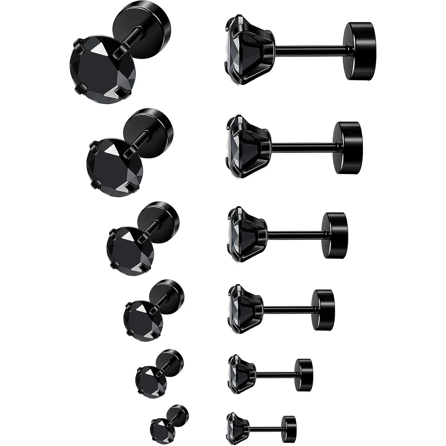 ·1 Set=6 Pairs, Comes With 6 Different Sizes Black Stones,3MM-8MM are Available, More Choices for Daily Wear, Fancy Gifts to Your Friends or Families