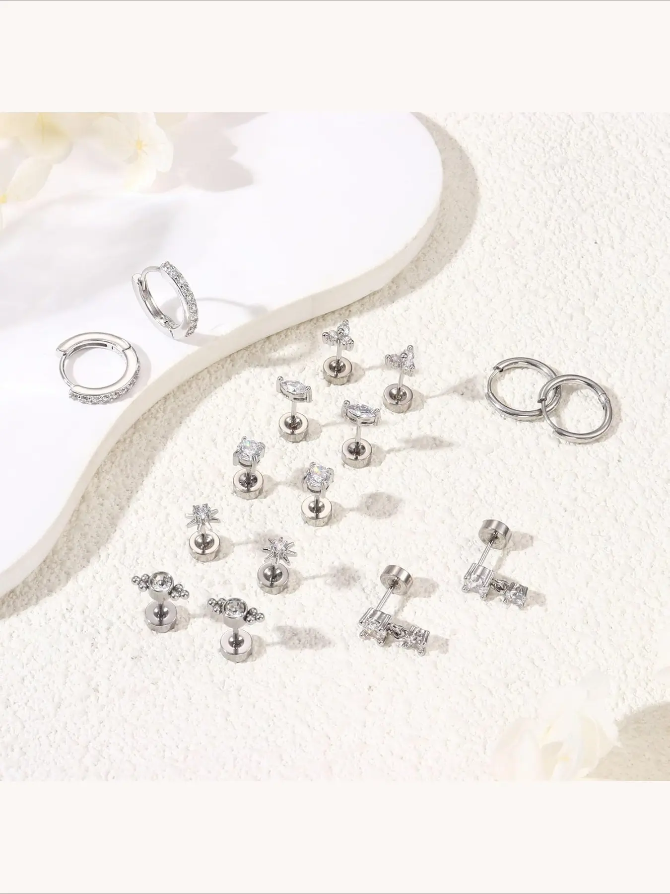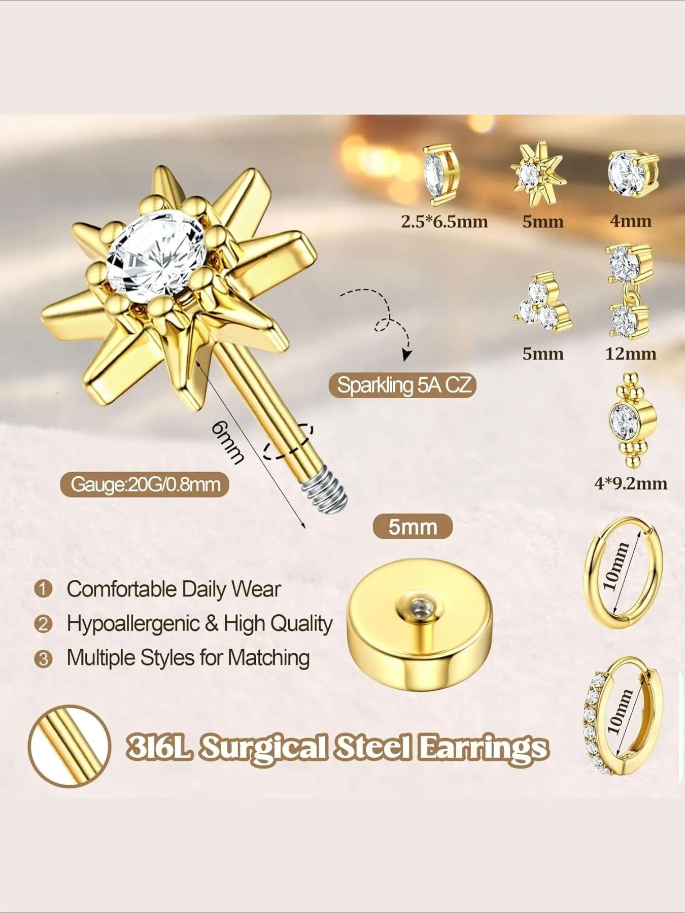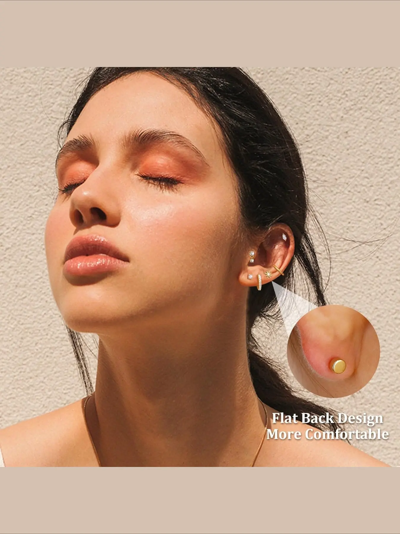 20g Hypoallergenic Flat Back Earrings, Studs Earrings, Cartilage Earring Sets for Multiple Piercings, Surgical Stainless Steel, Trendy Earring Stacks, Hoop Earrings