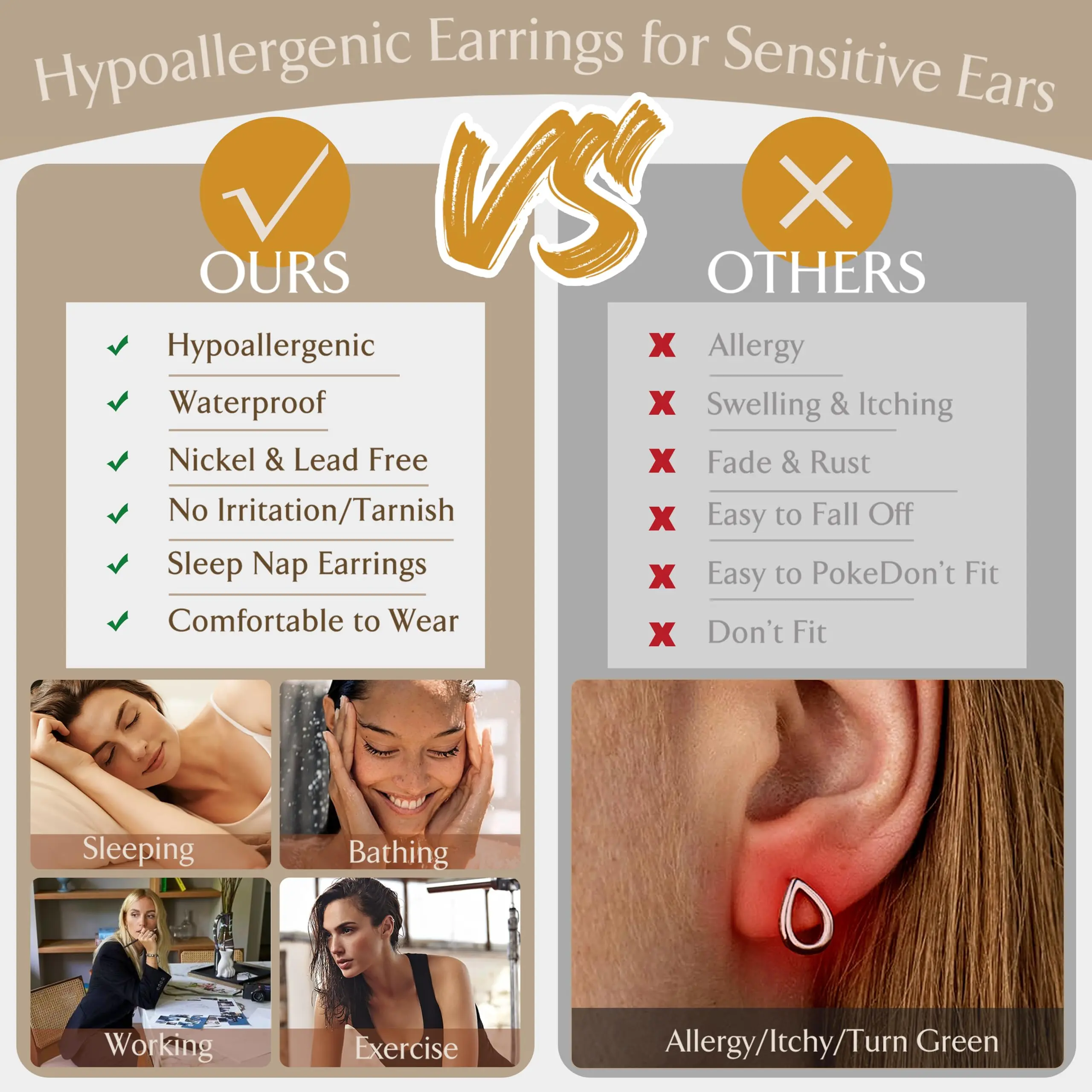 ·【Why Choose Us】Enjoy confidence in your purchase with our quality customer service : 365 days after sales service for these flat back earrings for women. Contact us if you have any problems about our surgical steel earrings, we will try best to make you satisfaction