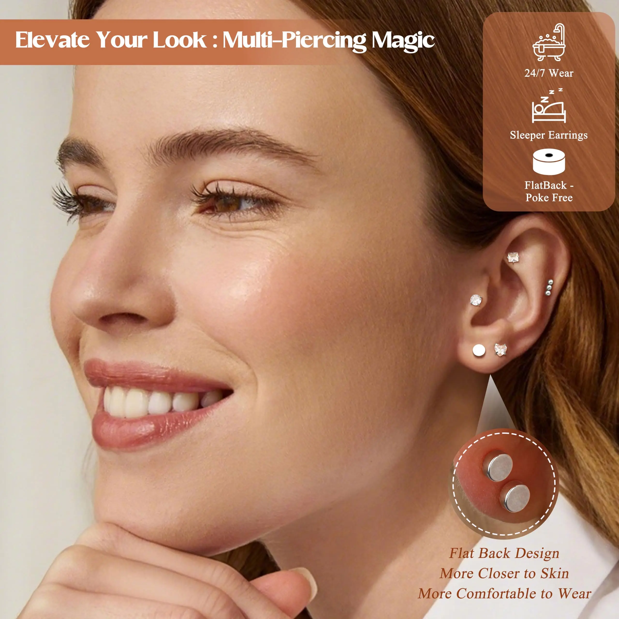 ·【Implant-Grade Surgical Steel Earrings】Comfy flat back earrings for women, crafted with 316L surgical stainless steel, tested by over 100+ women with metal sensitivities. The "Poke-Free" flat back earrings design reduces pressure by 90% compared to standard earrings buckles, practices proven for 96-hours continuous wear. The cartilage earrings for women are ideal for new piercings beginer and sensitive ears