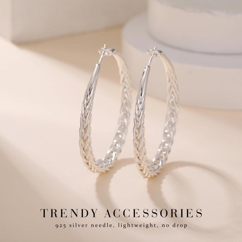 ·Exquisite Silver Hoop Earrings:The silver hoops are twisted design;Intricate craftsmanship adds to the eye-catching silver earrings for women hoops.The lightweight design ensures a comfortable fit, while the sturdy construction ensures long-lasting durability; You can easily wear large silver hoops all day long; Whether you're dressing up for a special occasion or adding a touch of glamor to your everyday look, our large silver hoop earrings are the perfect accessory to make a statement.