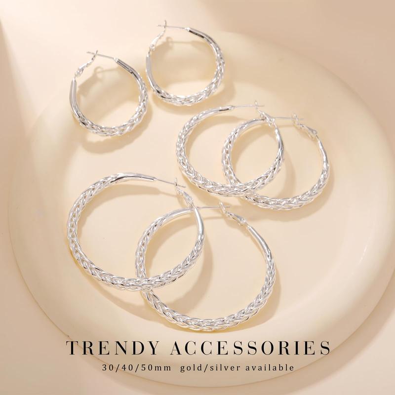 ·Eye-Catching Size:Thick twisted silver hoop earrings, diameter 30 mm/40 mm/50 mm are available; You can choose the most suitable size according to your matching needs; Big silver hoops are intricately crafted, yet they pay attention to detail, are lightweight and comfortable enough to wear for long periods of time;Large hoop earrings for women are eye-catching without overwhelming your look, striking a balance between elegance and sophistication.