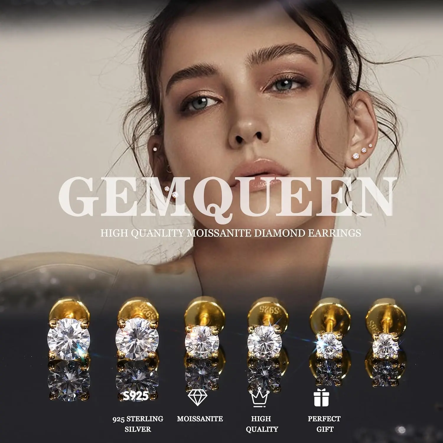 ·Hypoallergenic real moissanite earrings studs : These flat back stud earrings are made of 14k white gold plated 925 sterling silver and 100% REAL MOISSANITE that are sparkle as diamond and will never lose their Brilliance or Fire, which are luxury than stainless steel earrings or cubic zirconia earrings studs, well polished and long-lasting shiny. All the metals used are lead free, nickel free and hypoallergenic, suitable for sensitive ears.