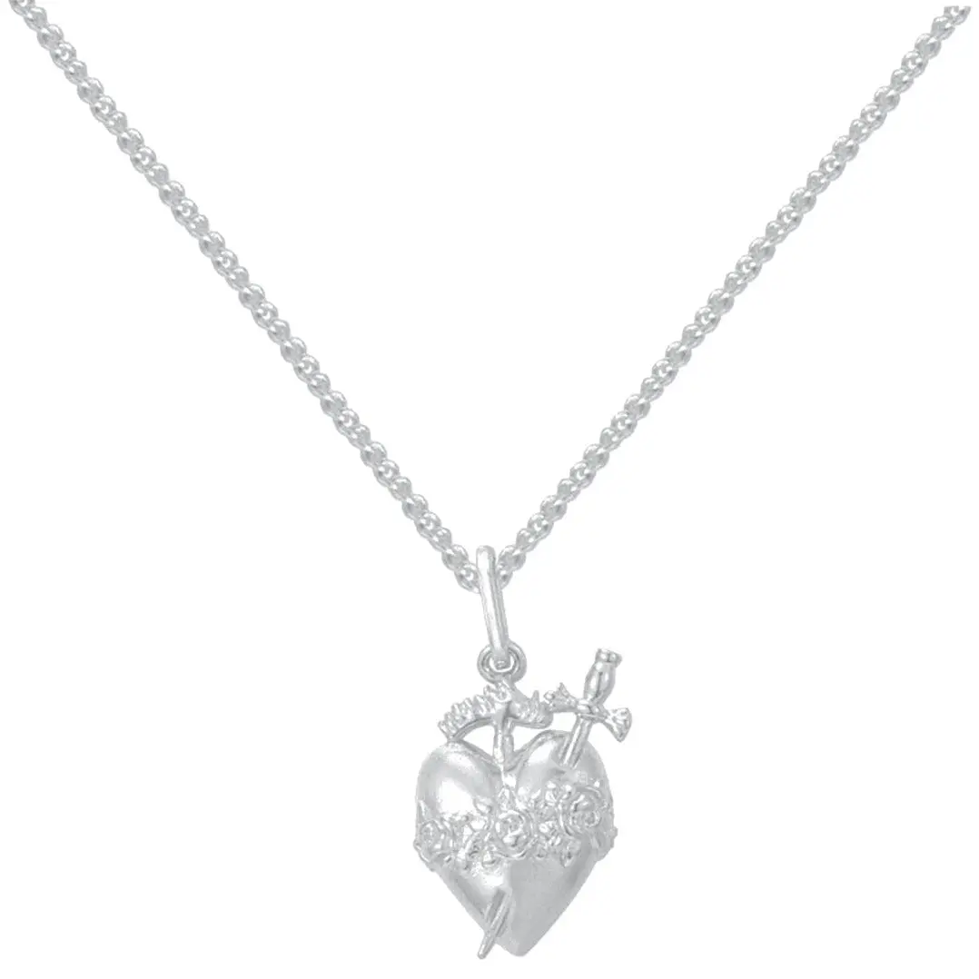 Bold, romantic, and symbolic — this gold necklace features a detailed heart pendant pierced by a delicate sword, adorned with intricate floral accents. A statement piece that embodies passion, strength, and timeless elegance. Perfect for layering or wearing solo to make your outfit unforgettable.