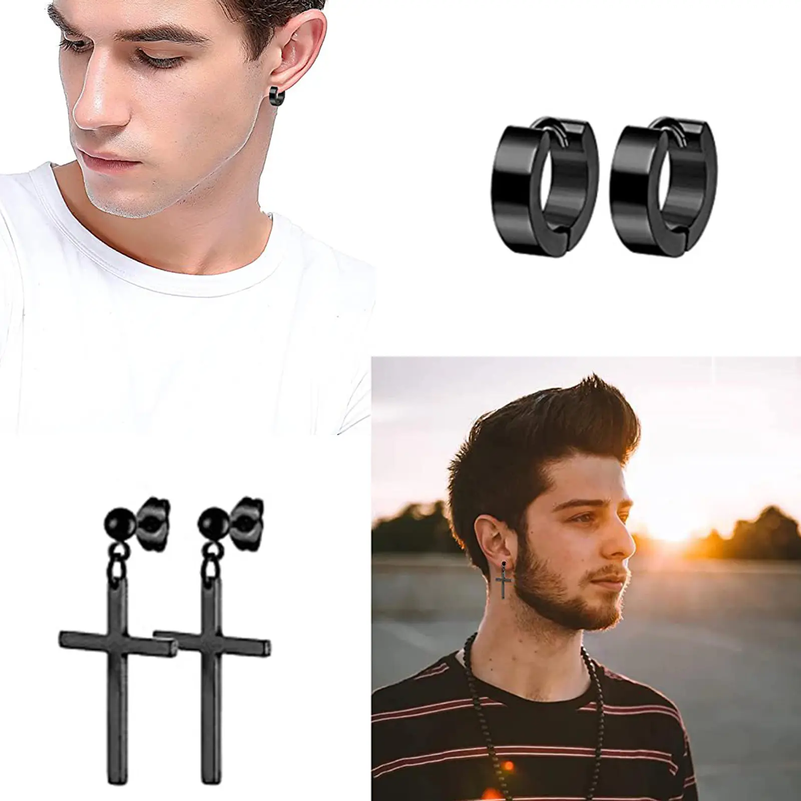 These men's earrings are made of high quality durable stainless steel with an anti-rust treatment, rust-proof and smooth polished finish.