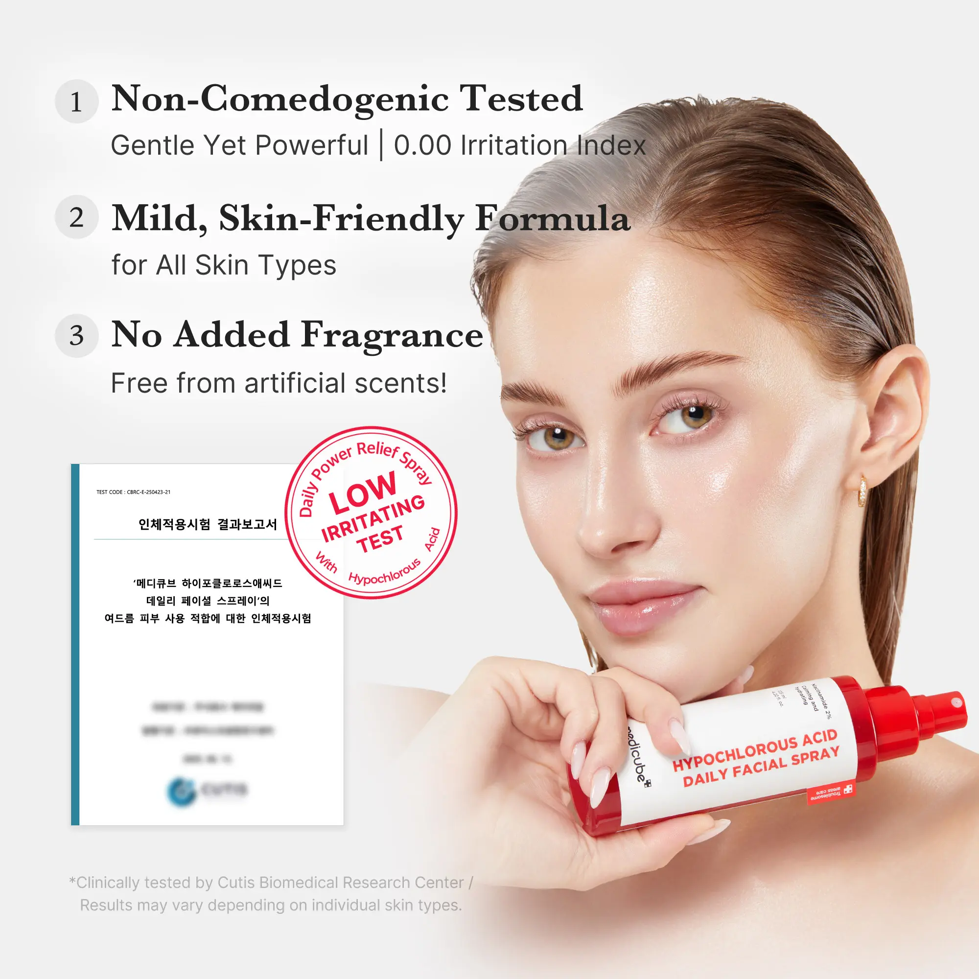 ·Multi-Active Formula for Calm, Clear Skin: Contains 150ppm Hypochlorous Acid for purifying care, plus Allantoin and Panthenol for soothing hydration.