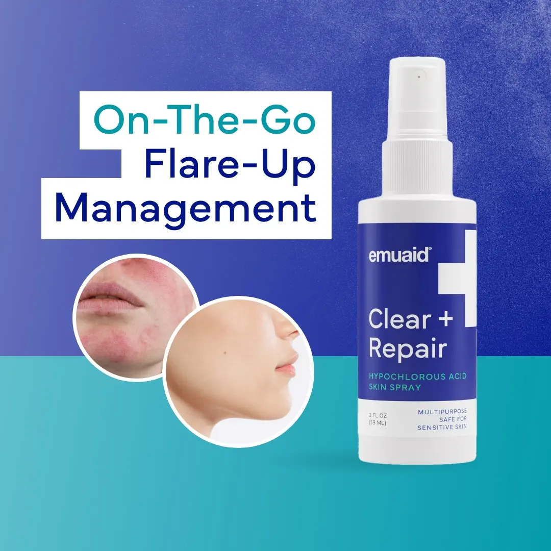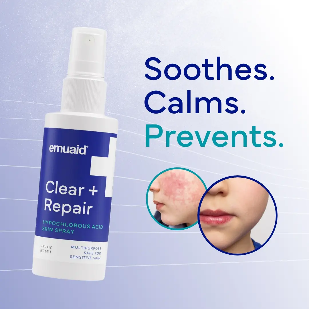 Embrace the benefits of the EMUAID Clear + Repair - Hypochlorous Acid Skin Spray for a healthier, clearer complexion and a more comfortable feel.