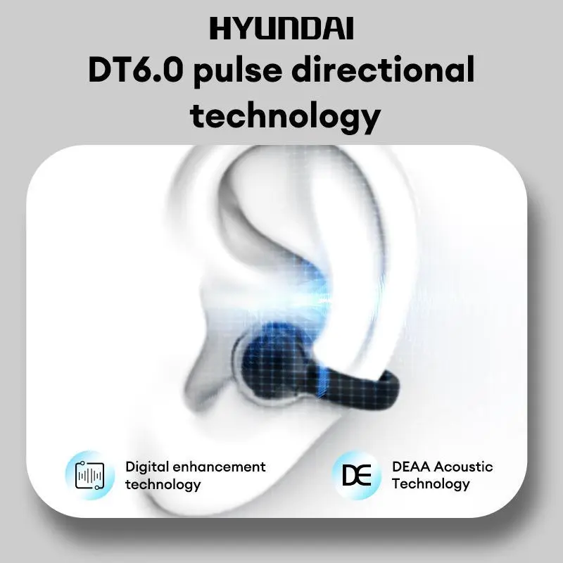 HYUNDAI C03 Clip-On Wireless Headphones with 2025 Bluetooth 6.0 for Faster, Stable Connection & Low Power Use, DT6.0 Pulse Directional Tech, 360° ACS Panoramic Sound, IPX5 Waterproof Electronic Headset Earbuds for Music & Calls, Comfortable for Sports