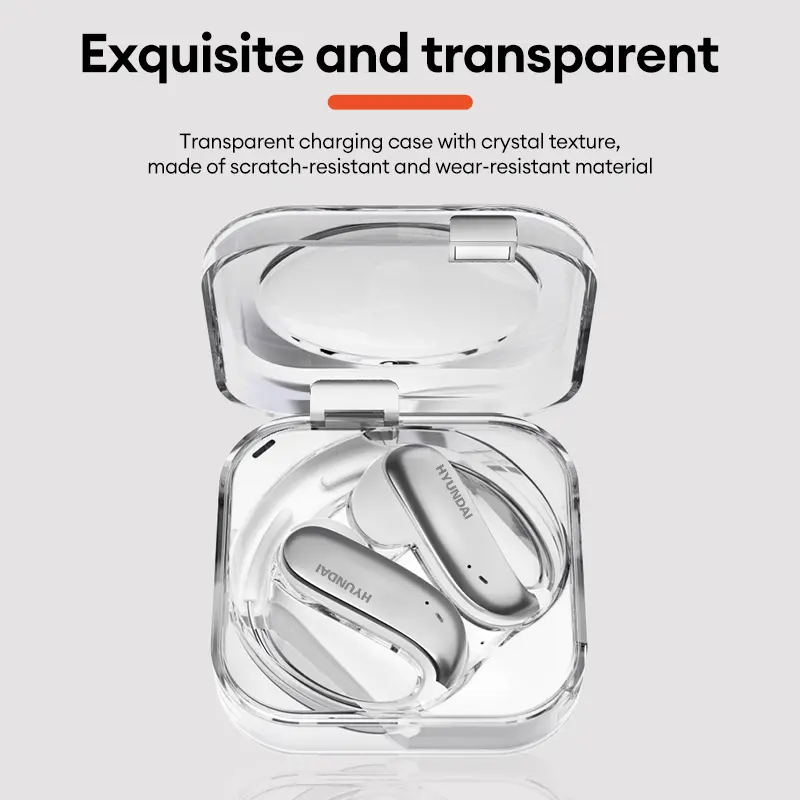 HYUNDAI D78 Earhook Bluetooth Earphone, with a new lightweight and micro in ear titanium alloy ear hook design, paired with a transparent and stylish headphone compartment, is very suitable for fashionable young people, work, leisure, sports use, etc