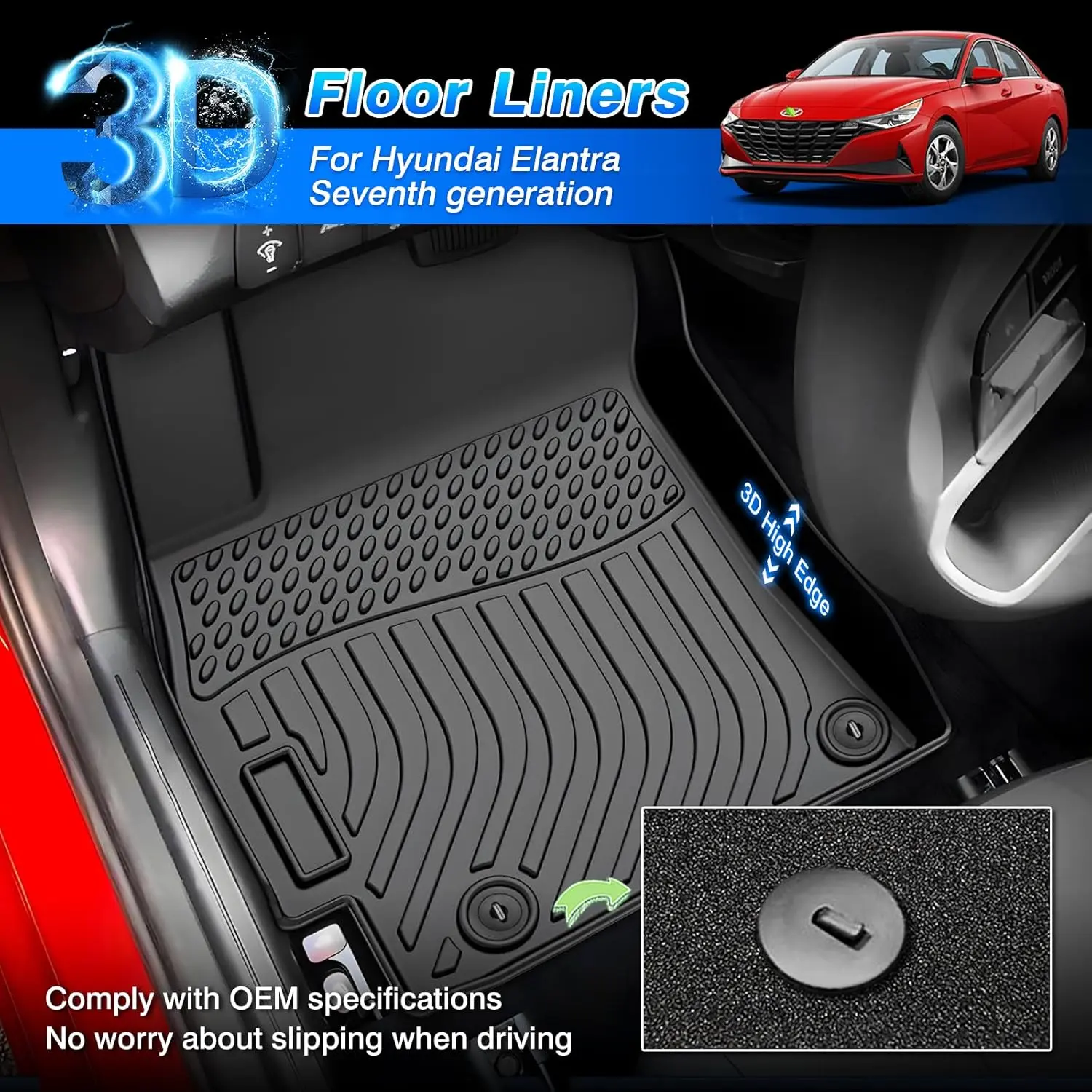 Elantra accessories designed for Hyundai Elantra gas models (not hybrid or GT). These mats offer a perfect fit without trimming. Using 3D screening technology, they capture every corner for optimal coverage. Ideal for 2017-2025 Elantra owners seeking protection and style.