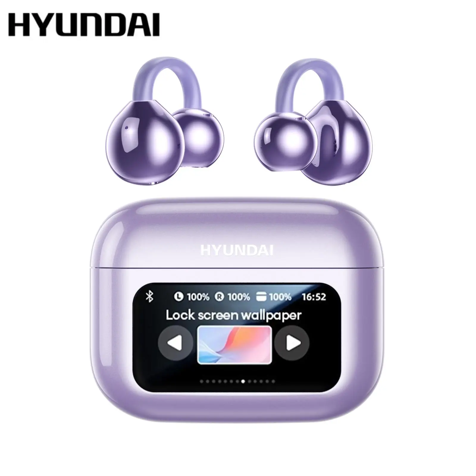 Ever wished your headphones could do more than just play music? Meet the HYUNDAI M100 Clip On Ear Headphones, designed for the active and tech-savvy. These wireless headphones feature a stunning full-color audio-visual touch screen that lets you control music, take calls, and even customize your display with fun wallpapers. Whether you're jogging, hitting the gym, or just on the move, their waterproof and sweatproof build keeps up with your lifestyle without missing a beat. The adaptive noise reduction ensures crystal-clear calls, while the smart gesture controls and voice assistant support make hands-free operation a breeze. Plus, the open wear design offers comfort during long sessions, and the built-in flashlight and remote camera control add handy extras to your day. Inside the box, you'll find the HYUNDAI M100 headphones ready to pair with your devices, plus charging accessories for quick 1.5-hour power-ups. Ready to upgrade your audio game? Grab the HYUNDAI M100 and experience the future of wireless sound today!