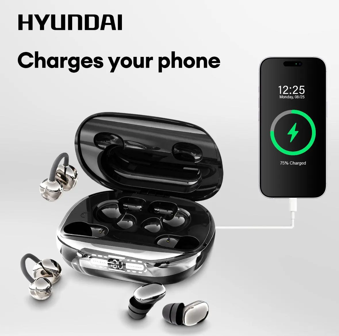 HYUNDAI Power bank & Ear clip type & Sleeping type 3-in-1 wireless Bluetooth headphones,#tiktokmademebuyit #powerbank #earbuds #wireless #bluetooth