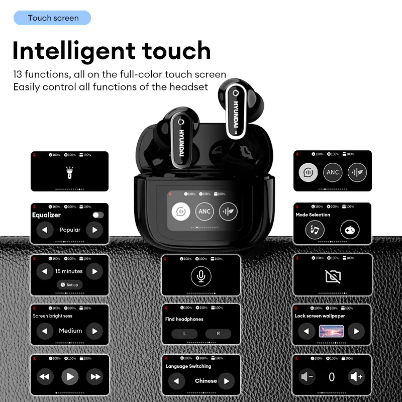 HYUNDAI Y22 In-Ear Wireless Headphones with 2025 Bluetooth 5.4, Touch Smart Screen, ANC Noise Reduction, Anti-Loss Function, High-Fidelity Audio Decoding, Ergonomic Comfortable Fit, Compatible with Mainstream Devices, Earbuds for Music & Calls