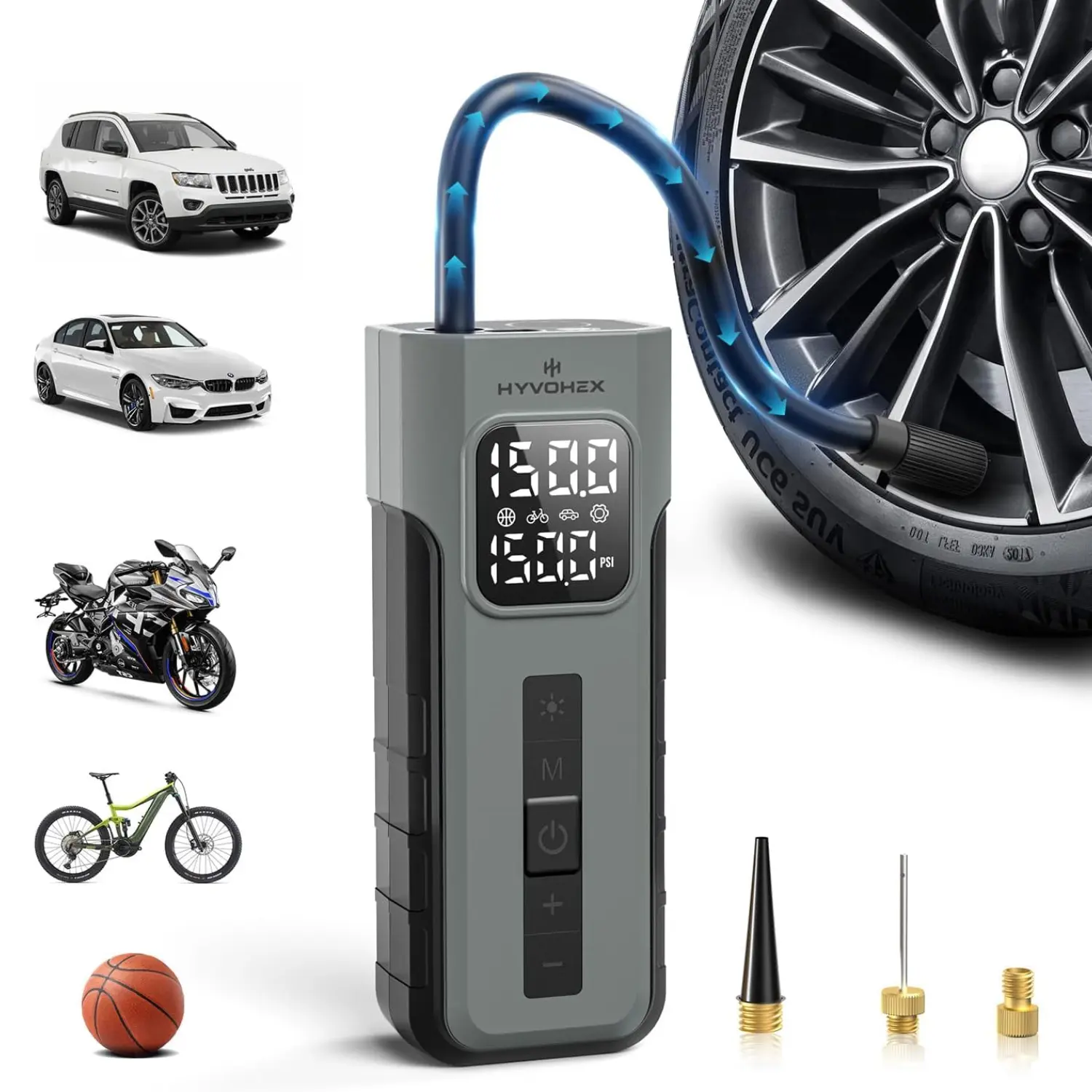 HYVOHEX Tire Inflator Portable Air Compressor, 1 Min Fast Inflation Cordless Bike Pump with Digital Pressure Gauge LED Light, 150 PSI Electric Air Pump for Car Tires, Bicycle, Motorcycle, Ball SpringStatementsHYVOHEX Tire Inflator Portable Air Compressor, 1 Min Fast Inflation Cordless Bike Pump with Digital Pressure Gauge LED Light, 150 PSI Electric Air Pump for Car Tires, Bicycle, Motorcycle, Ball SpringStatementsHYVOHEX Tire Inflator Portable Air Compressor, 1 Min Fast Inflation Cordless Bike Pump with Digital Pressure Gauge LED Light, 150 PSI Electric Air Pump for Car Tires, Bicycle, Motorcycle, Ball SpringStatementsHYVOHEX Tire Inflator Portable Air Compressor, 1 Min Fast Inflation Cordless Bike Pump with Digital Pressure Gauge LED Light, 150 PSI Electric Air Pump for Car Tires, Bicycle, Motorcycle, Ball SpringStatementsHYVOHEX Tire Inflator Portable Air Compressor, 1 Min Fast Inflation Cordless Bike Pump with Digital Pressure Gauge LED Light, 150 PSI Electric Air Pump for Car Tires, Bicycle, Motorcycle, Ball SpringStatementsHYVOHEX Tire Inflator Portable Air Compressor, 1 Min Fast Inflation Cordless Bike Pump with Digital Pressure Gauge LED Light, 150 PSI Electric Air Pump for Car Tires, Bicycle, Motorcycle, Ball SpringStatementsHYVOHEX Tire Inflator Portable Air Compressor, 1 Min Fast Inflation Cordless Bike Pump with Digital Pressure Gauge LED Light, 150 PSI Electric Air Pump for Car Tires, Bicycle, Motorcycle, Ball SpringStatementsHYVOHEX Tire Inflator Portable Air Compressor, 1 Min Fast Inflation Cordless Bike Pump with Digital Pressure Gauge LED Light, 150 PSI Electric Air Pump for Car Tires, Bicycle, Motorcycle, Ball SpringStatementsHYVOHEX Tire Inflator Portable Air Compressor, 1 Min Fast Inflation Cordless Bike Pump with Digital Pressure Gauge LED Light, 150 PSI Electric Air Pump for Car Tires, Bicycle, Motorcycle, Ball SpringStatementsHYVOHEX Tire Inflator Portable Air Compressor, 1 Min Fast Inflation Cordless Bike Pump with Digital Pressure Gauge LED Light, 150 PSI Electric Air Pump for Car Tires, Bicycle, Motorcycle, Ball SpringStatementsHYVOHEX Tire Inflator Portable Air Compressor, 1 Min Fast Inflation Cordless Bike Pump with Digital Pressure Gauge LED Light, 150 PSI Electric Air Pump for Car Tires, Bicycle, Motorcycle, Ball SpringStatementsHYVOHEX Tire Inflator Portable Air Compressor, 1 Min Fast Inflation Cordless Bike Pump with Digital Pressure Gauge LED Light, 150 PSI Electric Air Pump for Car Tires, Bicycle, Motorcycle, Ball SpringStatements