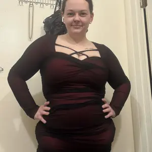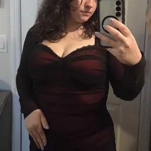 This dress makes me feel sexy. The 2 layers make it look like you have the most perfect hourglass body. It holds up my chest nice so I don’t have to wear a bra. The dress is smooth, silky, and just overall a great purchase. I will not regret it. And neither will you.