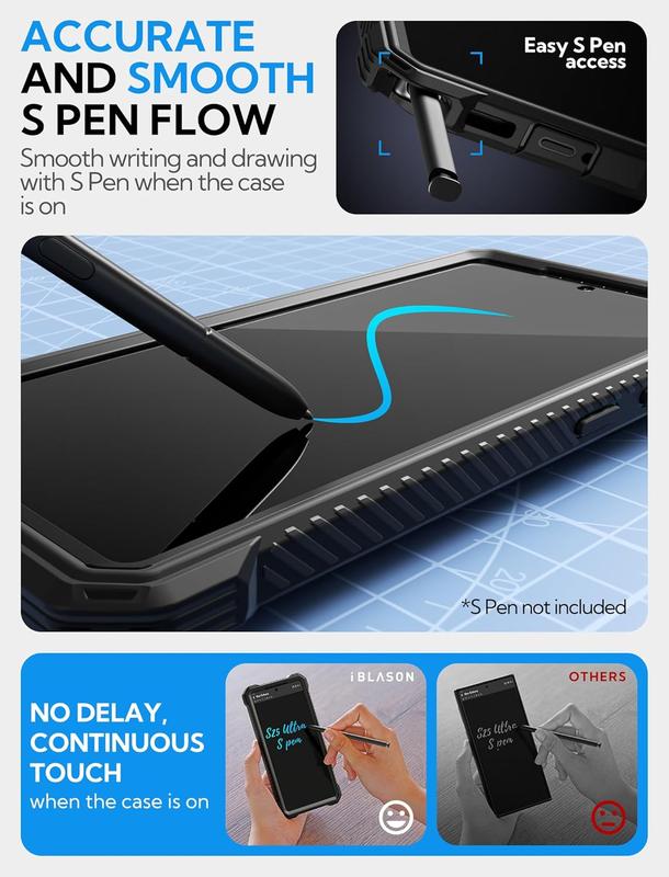 Ever worried about dropping your pricey Samsung Galaxy S25 Ultra or S24 Ultra? Meet the i-Blason full-body case designed just for your device! This case packs military-grade protection with four-corner airbags and a 20ft drop test rating, keeping your phone safe from shocks and scratches. The built-in screen protector doesn’t mess with your fingerprint ID, so unlocking stays smooth. Plus, the zinc alloy camera cover shields your lens from damage and flips out to become a handy kickstand for binge-watching or video calls. Thanks to the powerful N52 magnet, you can easily snap your phone onto MagSafe wireless chargers, car mounts, or magnetic stands without hassle. With raised bezels and a TPU bumper, your screen and camera get extra defense against everyday bumps. Whether you’re at work, on the go, or just chilling, this case has your back—and front! Included is the full 360° case with screen protector and camera cover stand. Ready to protect your phone in style? Grab the i-Blason case and enjoy peace of mind with every drop and charge!