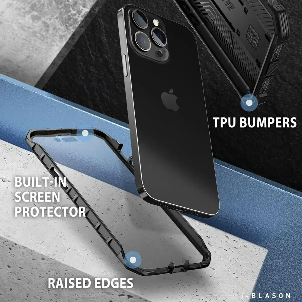 5. i-Blason Phone case for iPhone 14 ,14 Pro Max ,14 Pro,14 Plus,13 Case with Stand,Built-in Screen Protector,Military-Grade Protection,Full-Body Rugged Protective Bumper Case with Kickstand & Belt Clip Holster (Tilt)