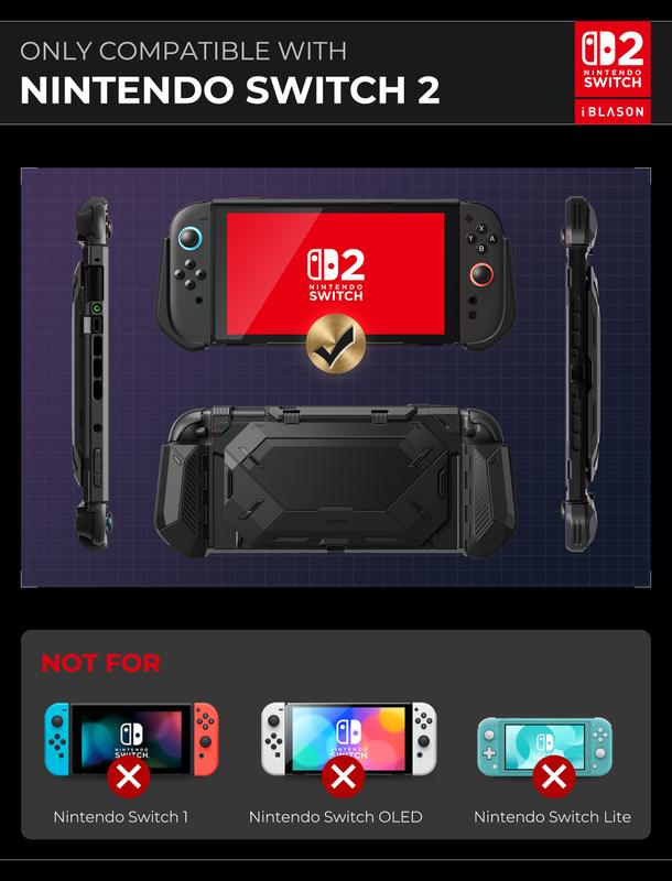 ·[Compatibility & Dock-Friendly] Only compatible with Switch 2 and Switch 2 Dock (2025 Release). Easy snap-on case design does not need to be removed for charging and fits in the docking station, but the stand must be unfolded to properly insert the device into the dock.