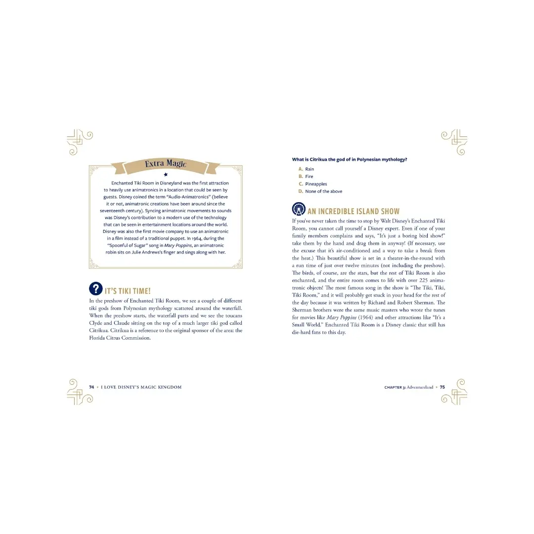 From Main Street USA, to Fantasyland, and beyond, I Love Disney’s Magic Kingdom explores every area of the park and is made for the true Disney fanatic—complete with surprising trivia, behind-the-scenes facts, fun quizzes, and so much more.