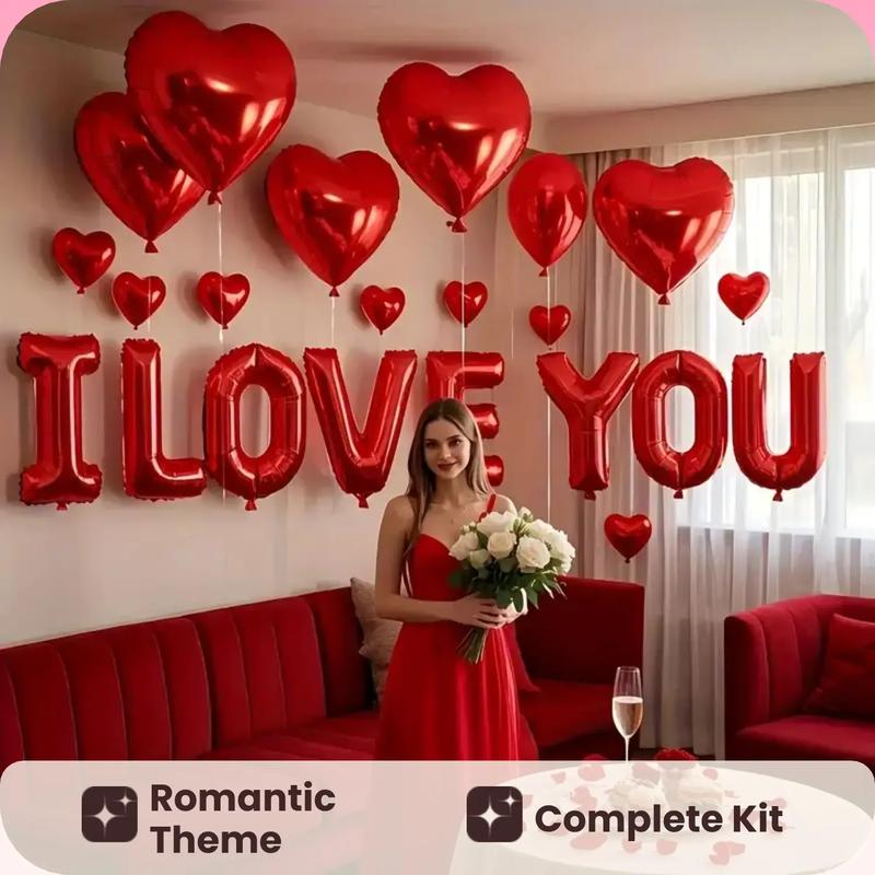 【Wedding Decoration】: The set includes a vibrant red 16-inch 'I Love You' banner, ideal for romantic wedding themes.