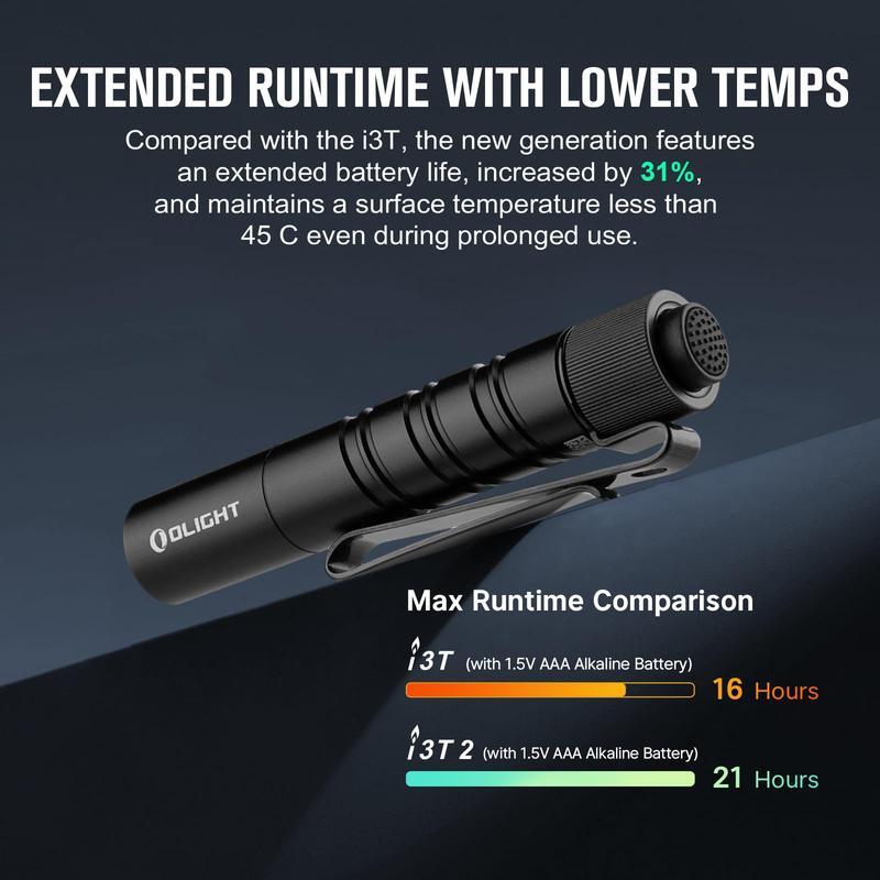 ·[Flexible Battery Options] In addition to an AAA alkaline charging source, I3T 2 is also compatible with a rechargeable source, which can boost the maximum output to 300 lumens.