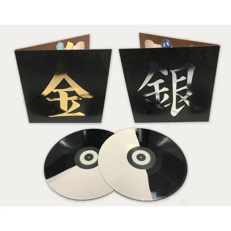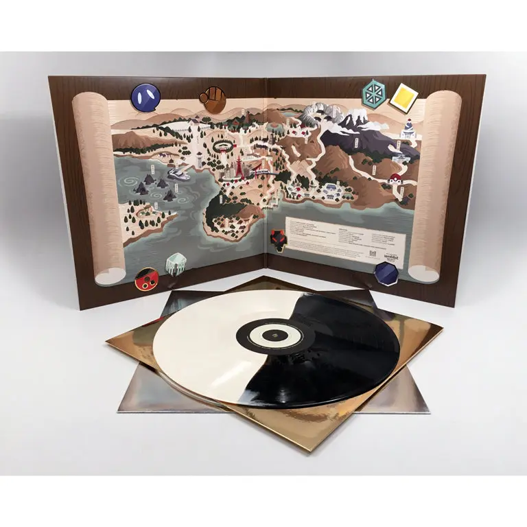 Accentuating the journey is an epic package design by artist Ryan Brinkerhoff, chock-full of premium trappings like: Premium Foil-Stamped Jacket; Gold/Silver Foil Inner Sleeves; Half-and-Half Color Pokeball Vinyl Discs; and an Epic Gatefold Illustration. The satisfaction of seeing these discs spin on a turntable is hard to pass up.