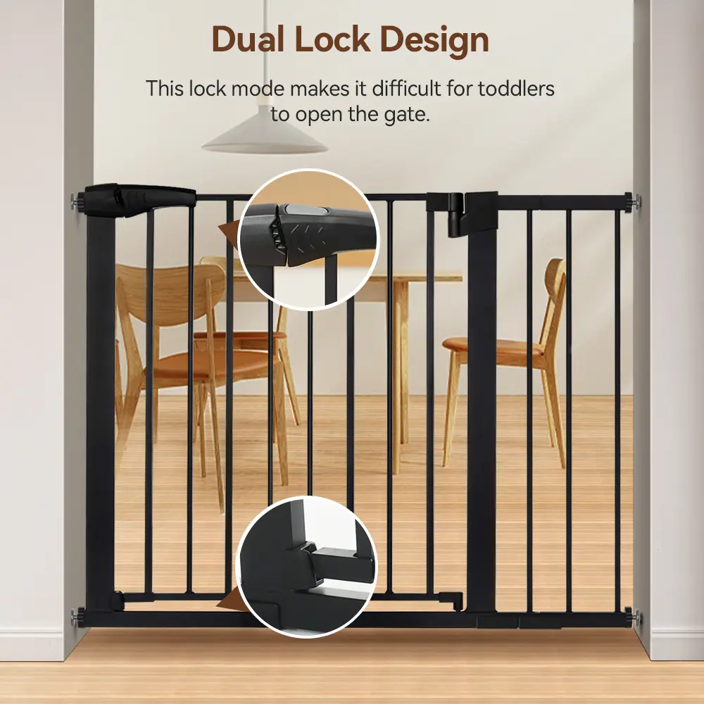 This 30" Extra Tall Baby Gate is a secure and easy-to-install pet gate, perfect for protecting your children and pets.