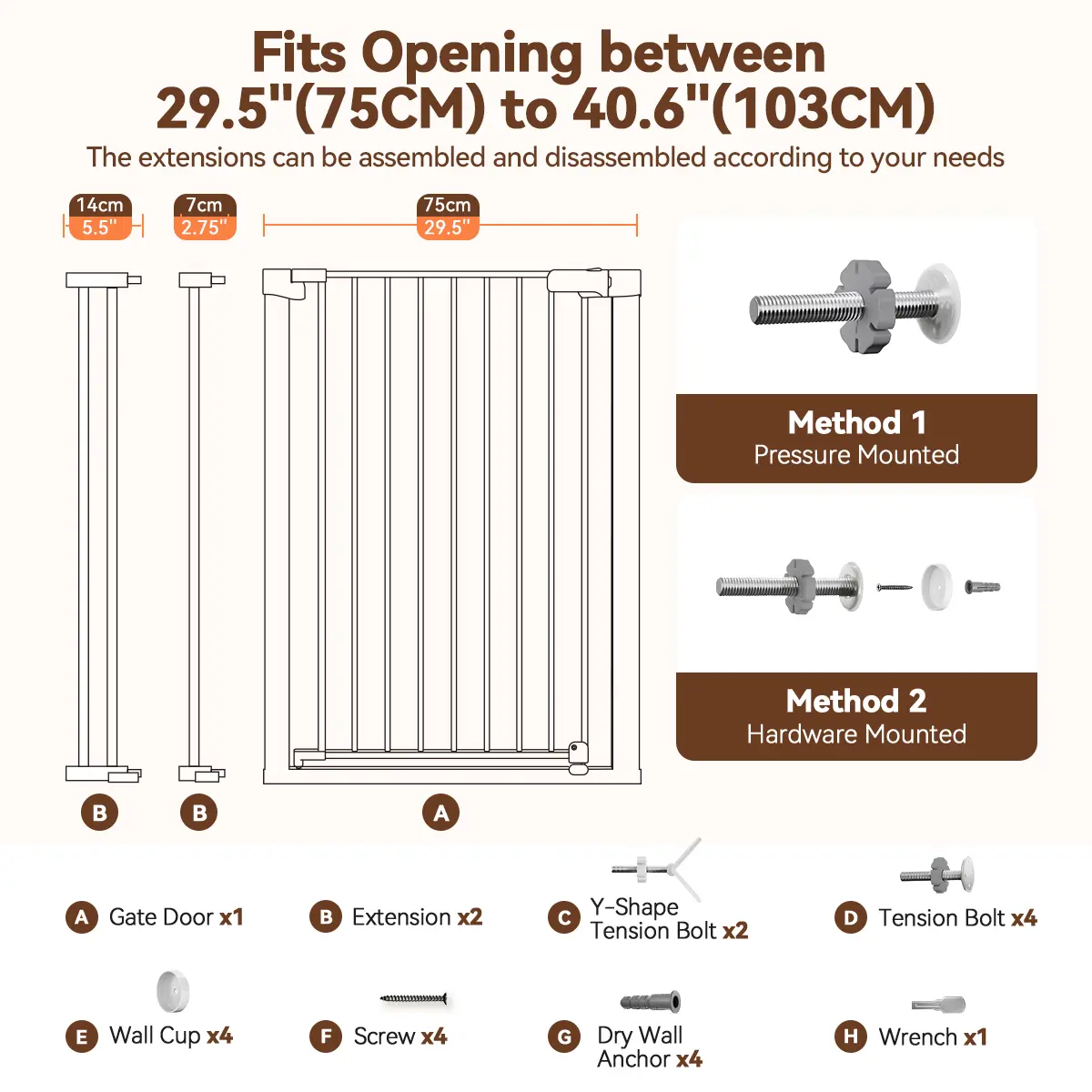 ·36" Tall x 40.6" Wide: This pet gate is designed to prevent pets from jumping over. Ideal for stairs, doorways, and hallways. Suitable for widths between 29.5-40.6". 🏠