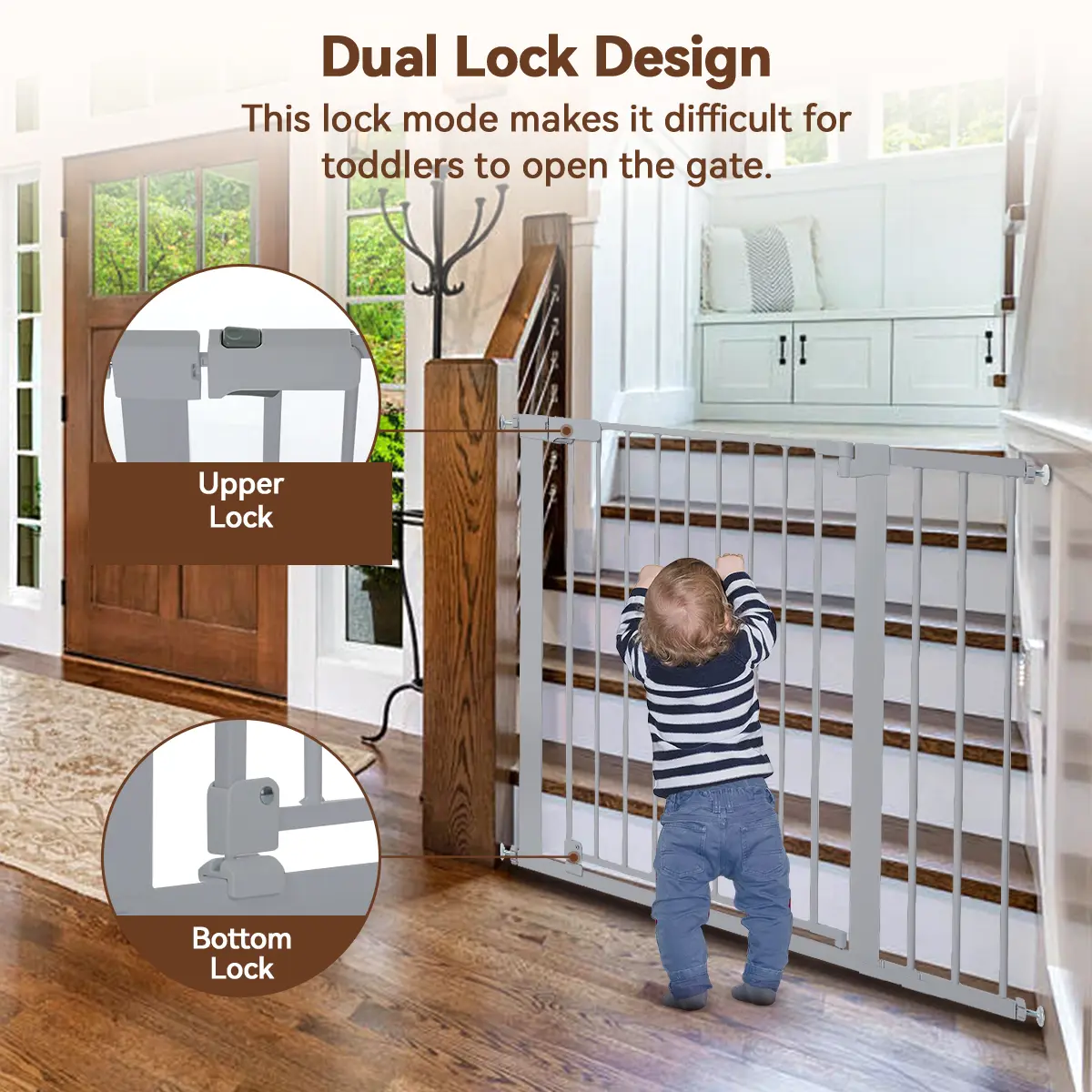 ·Auto-Close Feature: The gate has an auto-close feature for added safety. The double-lock system prevents toddlers from accidentally opening the gate. 🚪