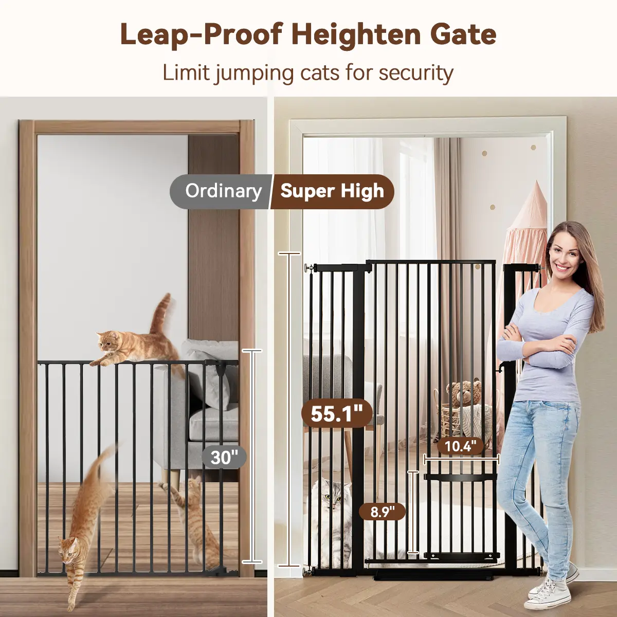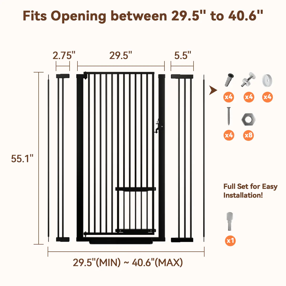 ·Height & Width: This gate stands 55.1" tall and fits openings 29.5" to 40.6" wide. Ideal for stairs, doorways, hallways, and houses. 🏠
