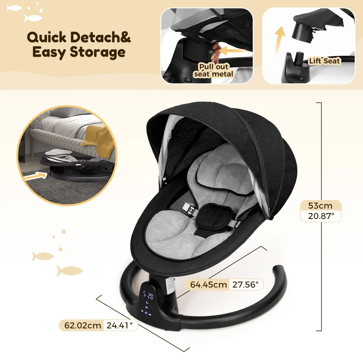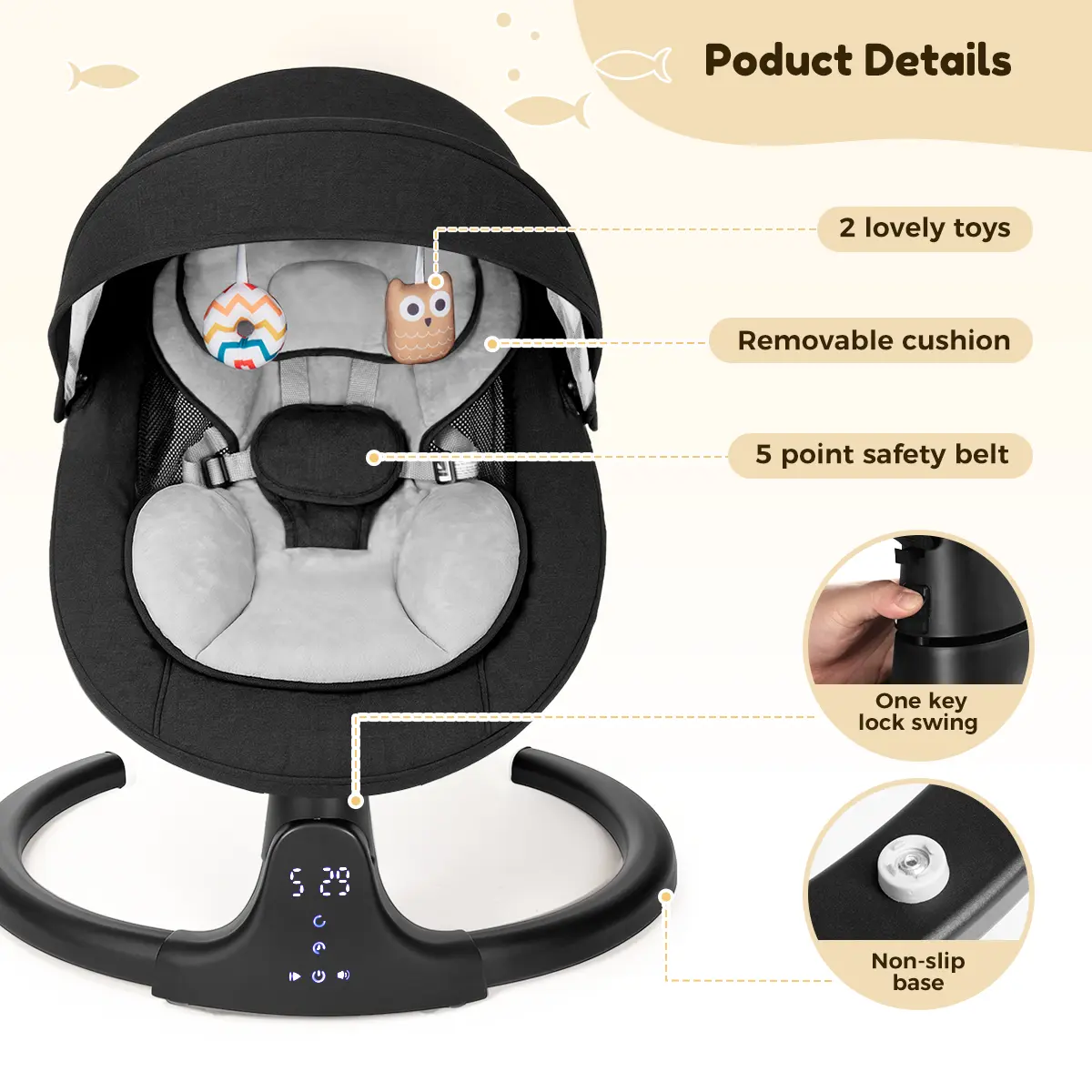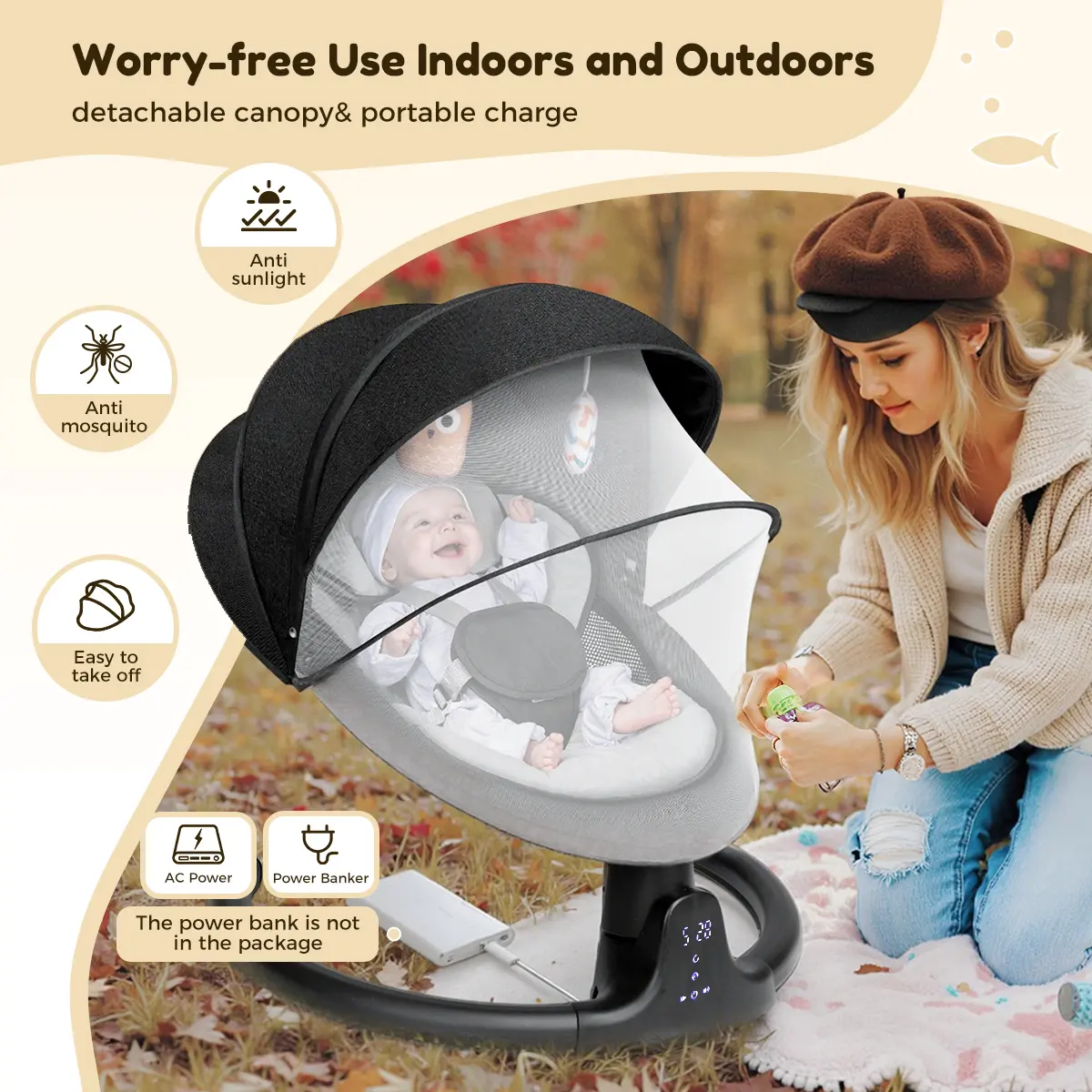 The baby swing is portable, making it easy to use anywhere. It is a perfect choice for parents looking for a comfortable and convenient baby swing. 🌟