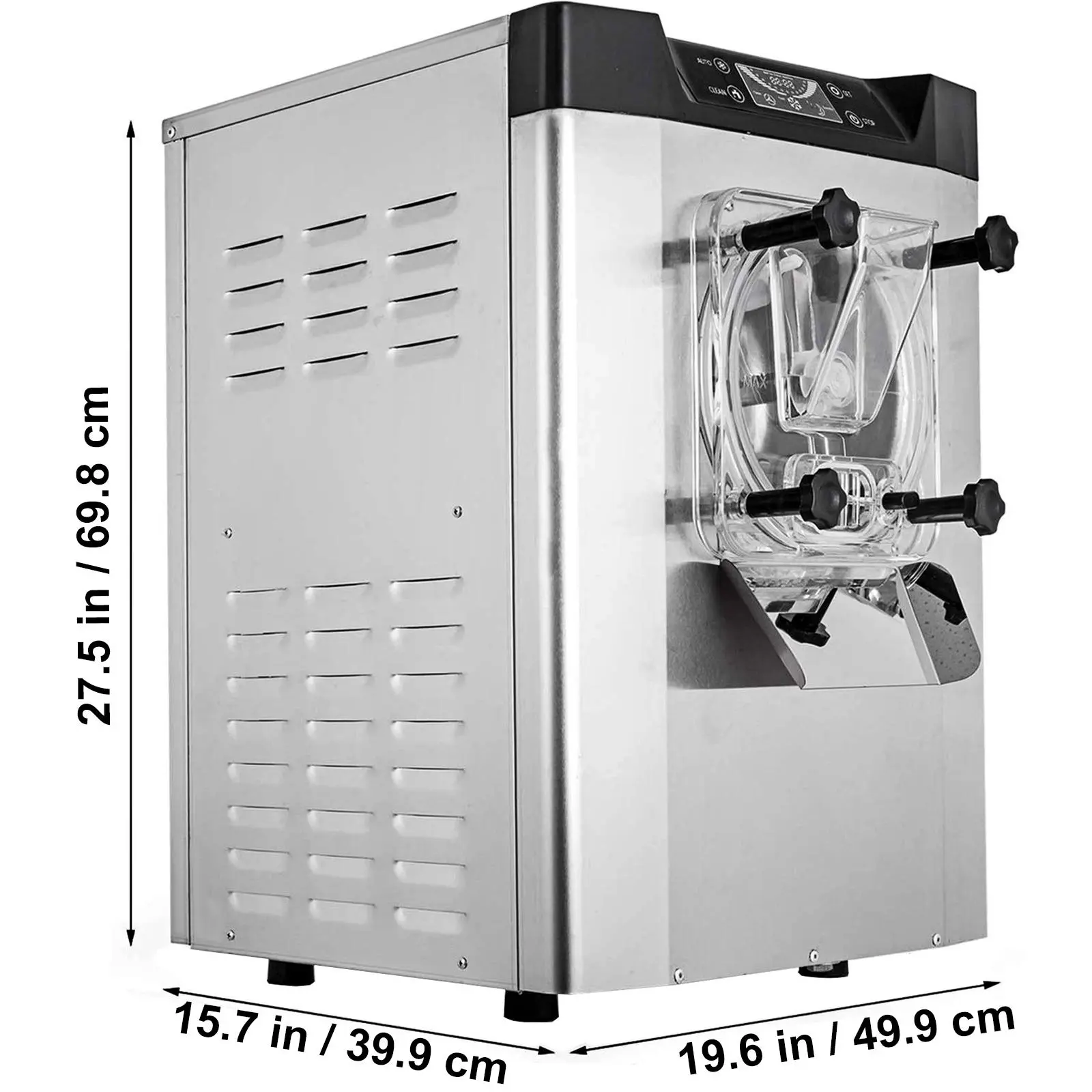 • Various Tastes & Places: Using this commercial hard ice cream maker, you can make different flavors of ice cream, including but not limited to milk, strawberry, chocolate, vanilla, mango, matcha, etc. Its compact size (about 15.7" x 19.6" x 27.5") and the countertop placing method make it perfect for beverage shops, dessert stores, cafeterias, western-style restaurants, etc.
