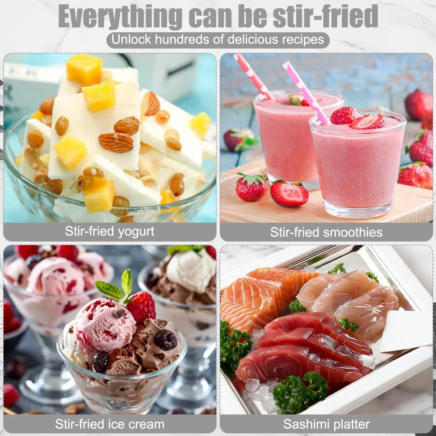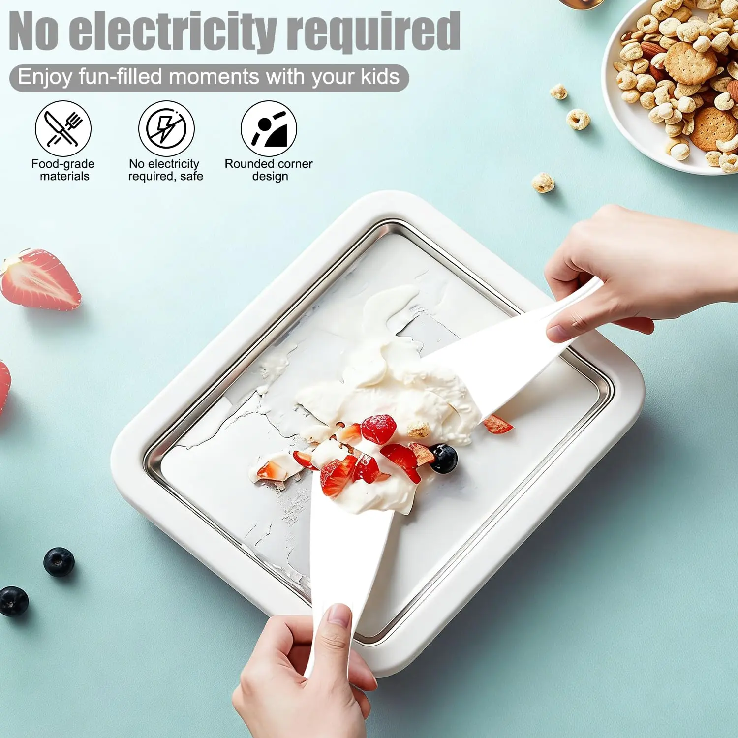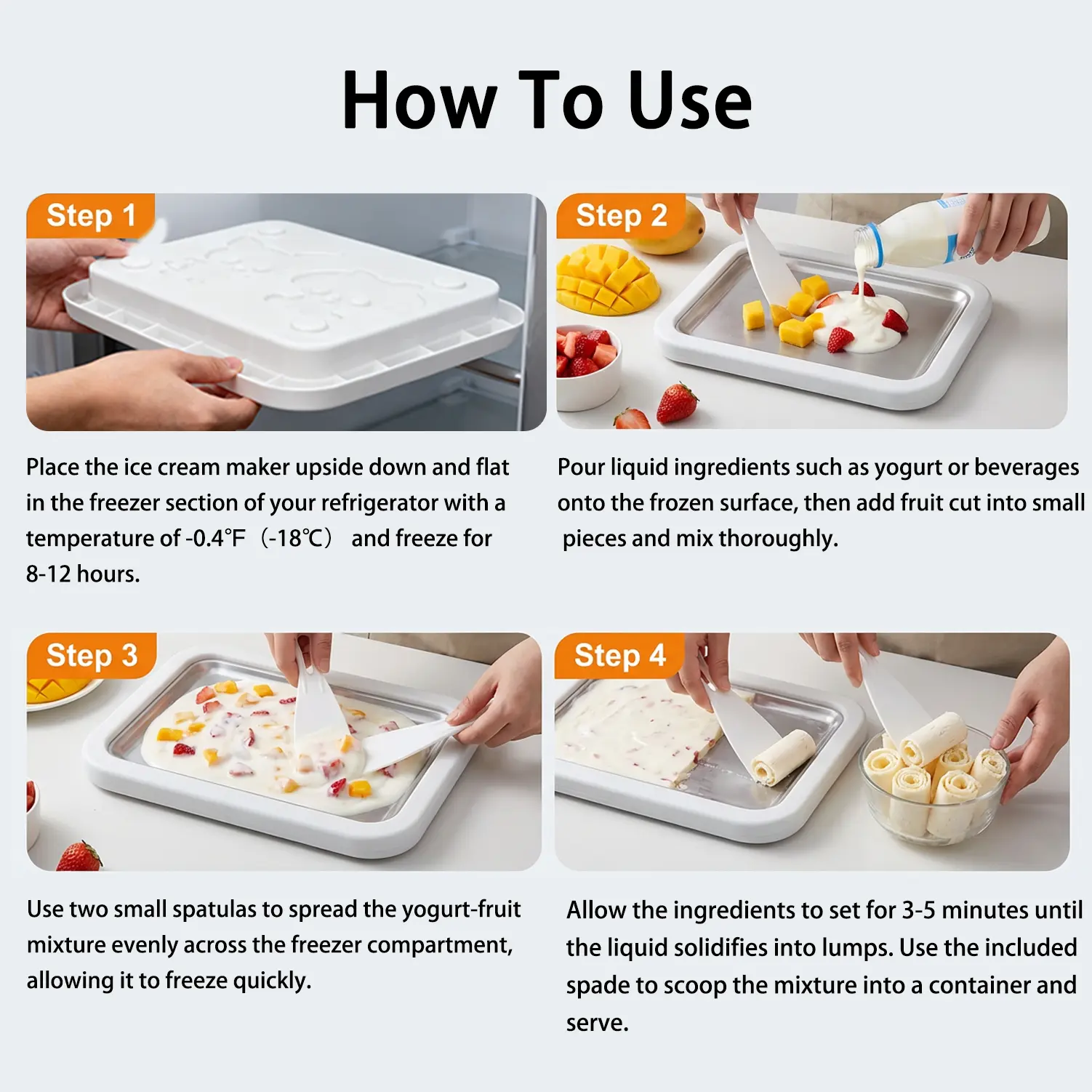 ·Scrape and roll it up with a spatula.This tray allows for simple and efficient manual creation of your own personalized ice cream. 🍦