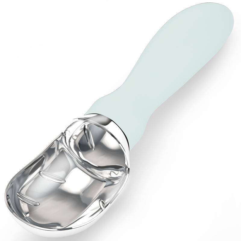 INNOVATIVE DESIGN: Scoop features flat edges to help you get more ice cream along the sides of the carton, as well as grooves that help release the ice cream easily; there is also a notch on the handle that will assist you in opening stubborn or frozen shut container lids
