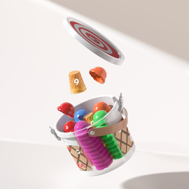 ·Complete Ice Cream Playset: Includes 7 vibrant colored scoops, 7 matching cones, 7 realistic fruit stickers, and a storage bucket. Each color corresponds to a different fruit theme, creating an engaging color matching and recognition system for kids.