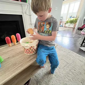 ·Interactive Pretend Food Play: Triple-Match System (scoop → cone → fruit sticker) turns color learning into delicious play! Kids create custom ice cream orders, developing social skills through role-playing as shopkeepers and customers in imaginative scenarios.