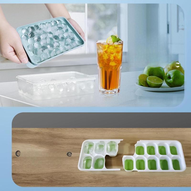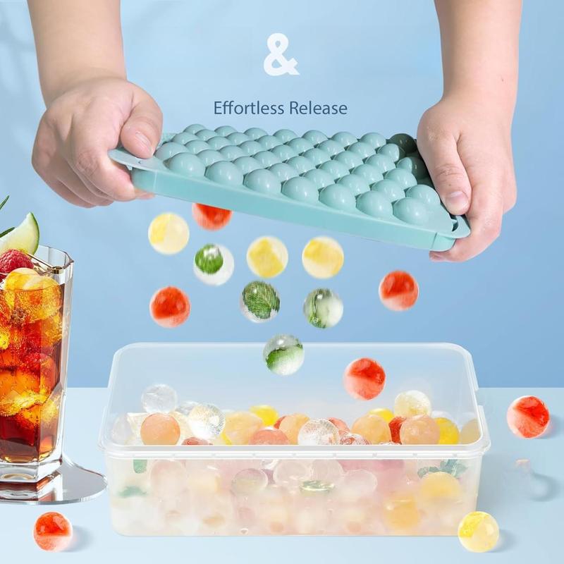 ·Easy to Release: Ice cube tray with lid and bin is made of durable plastic, making it a breeze to pop out perfectly round ice cubes compared to silicone molds. After taking the mold out of the freezer, give it a gentle twist for instant release