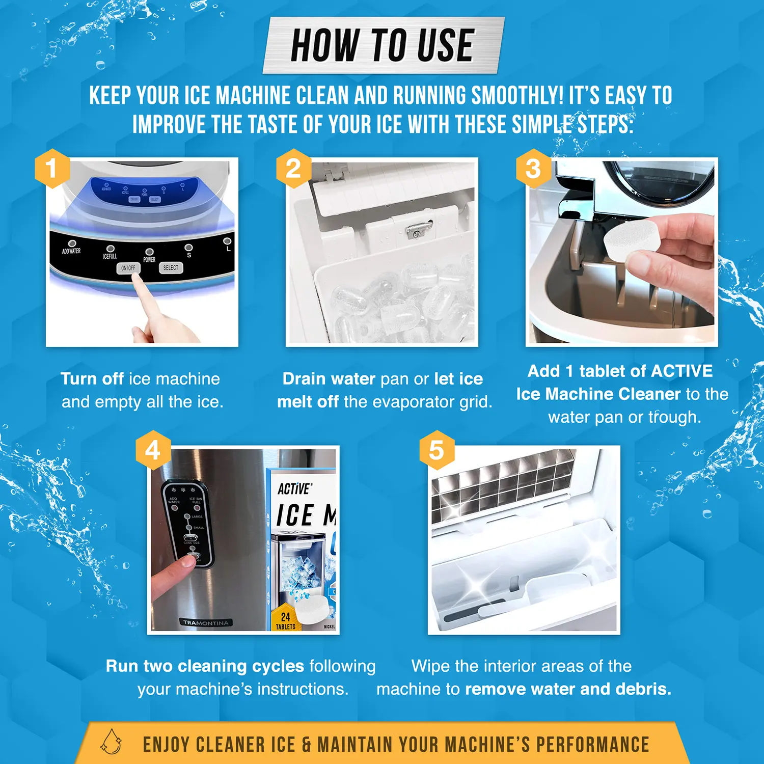 ยทKeep Ice Clear and Tasting Fresh: ACTIVE Ice Maker Cleaner and Descaler is essential to make Crystal Clear Ice. Enjoy the Best Tasting ice cube, nugget, pebble, pellet, bullet, crushed ice, and more at home with a regular descale treatment