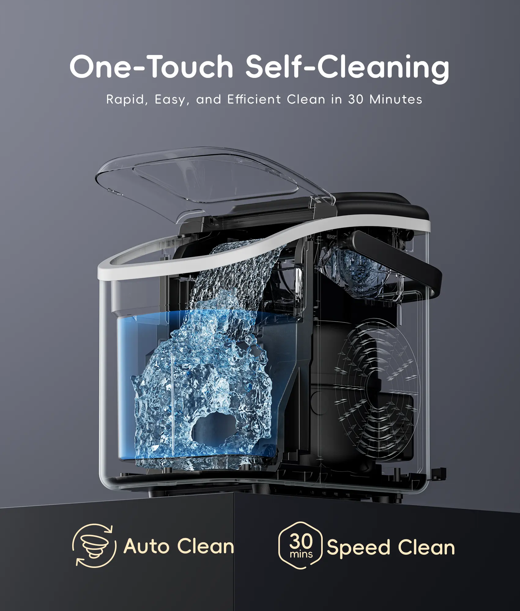 The Self-cleaning feature thoroughly cleans every nook and cranny of the ice maker with circulating water. We suggest washing the machine before long-term storage and ensuring it is dry inside
