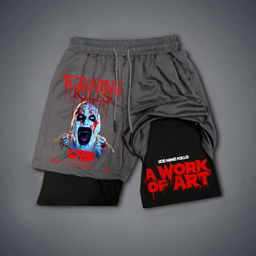 5. Ice Nine Kills Band Summer Men's Jorts Outfit Graphic Shorts Double-Layer Sports Shorts with Elastic Waistband & Drawcord for Comfortable Wear
