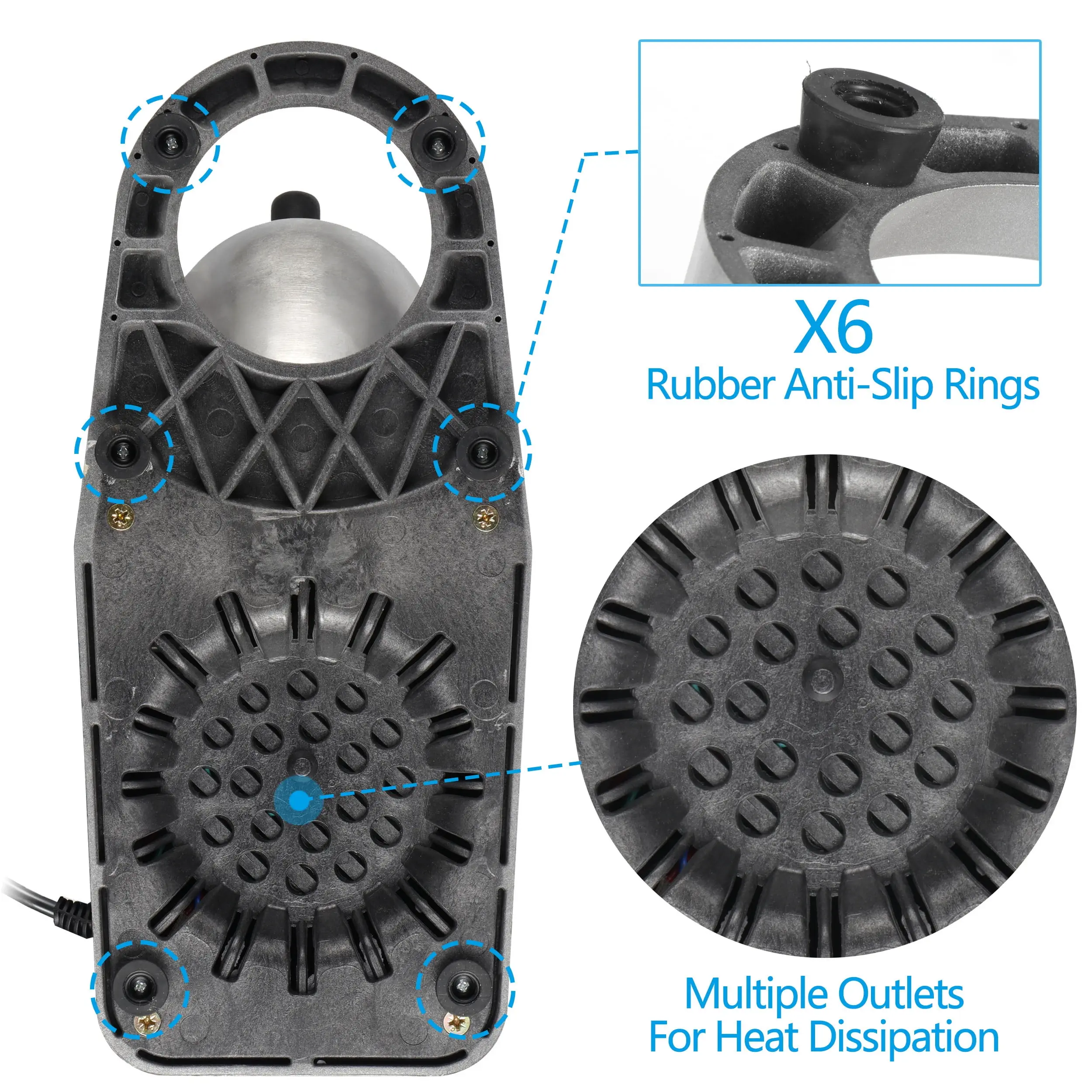 The heat that the machine produces will go through the plastic baseplate immediately. That will make sure the machine runs efficiently.