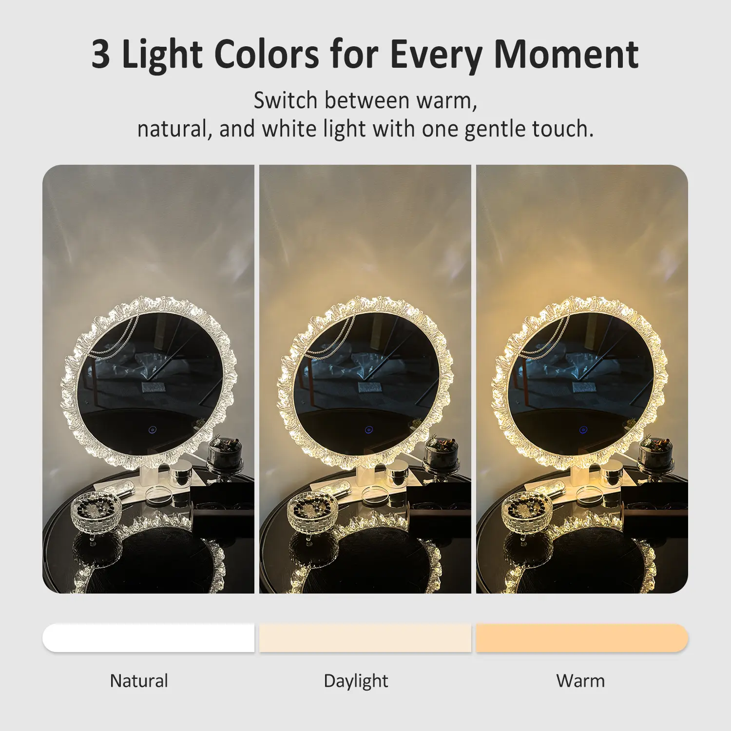 Perfect for birthdays, holidays, or "just because" gifts. This mirror is made for women who appreciate beauty, mood lighting, and aesthetic details. Whether it’s your girlfriend, sister, daughter, or best friend, she’ll love this blend of form and function—wrapped in elegance.