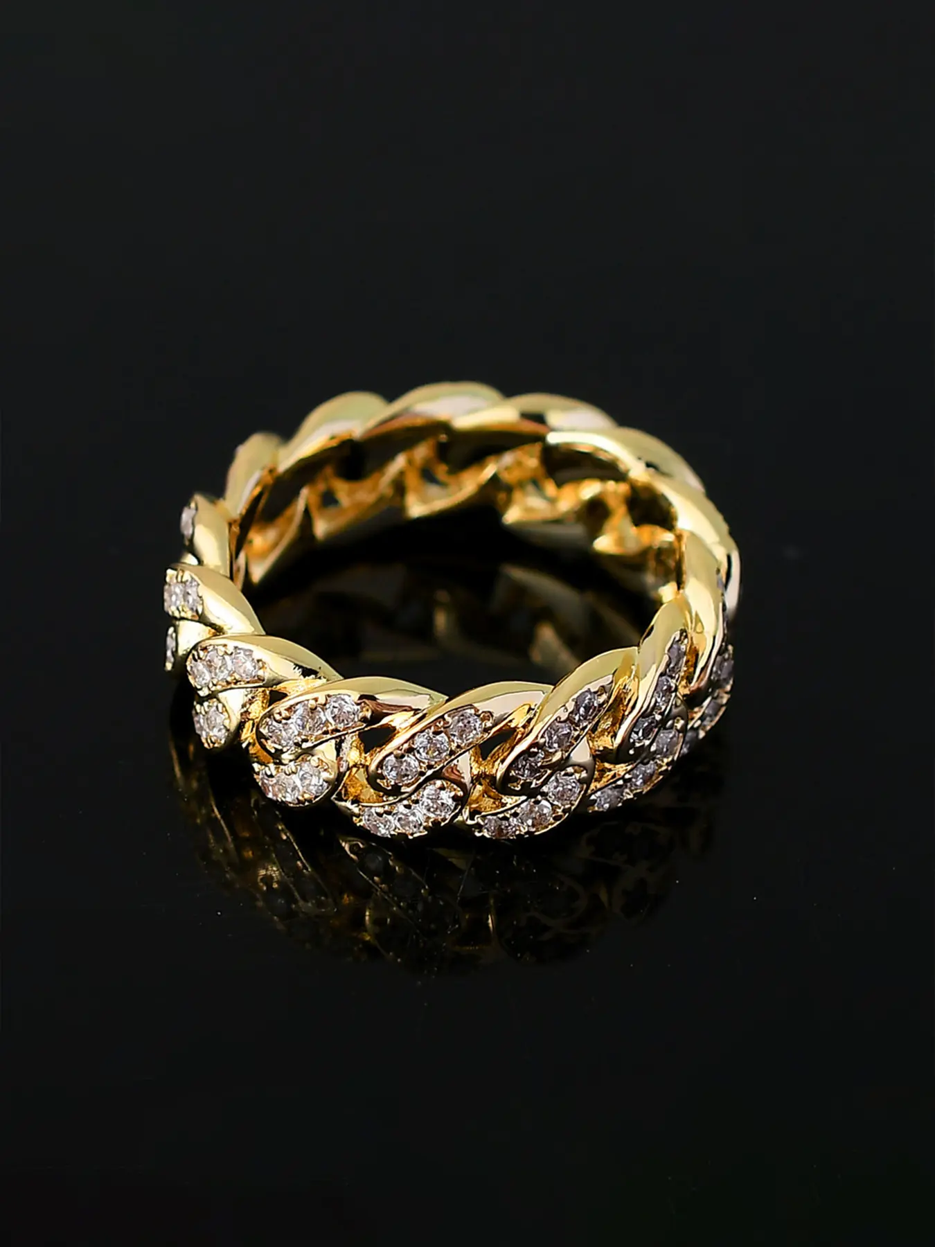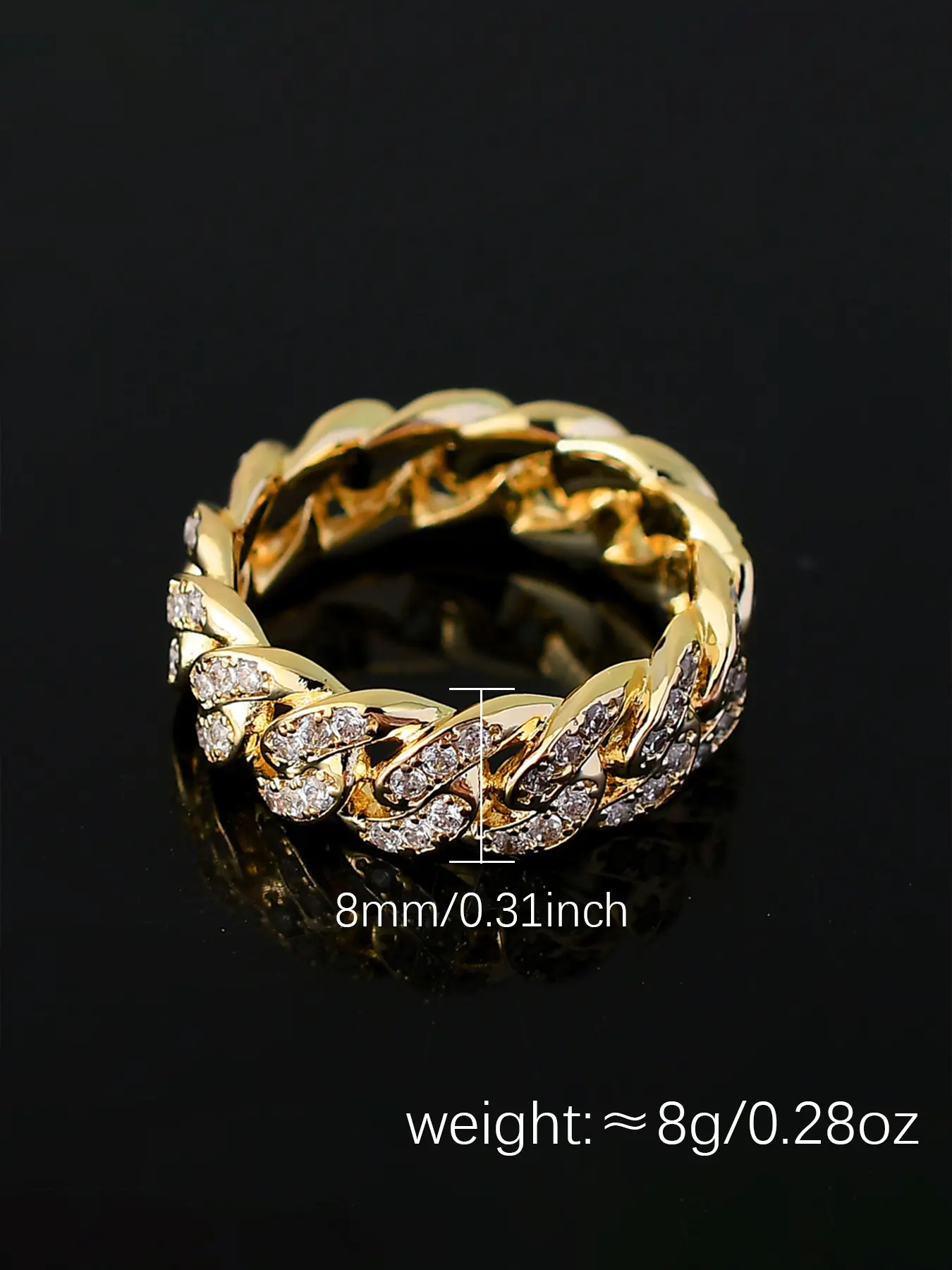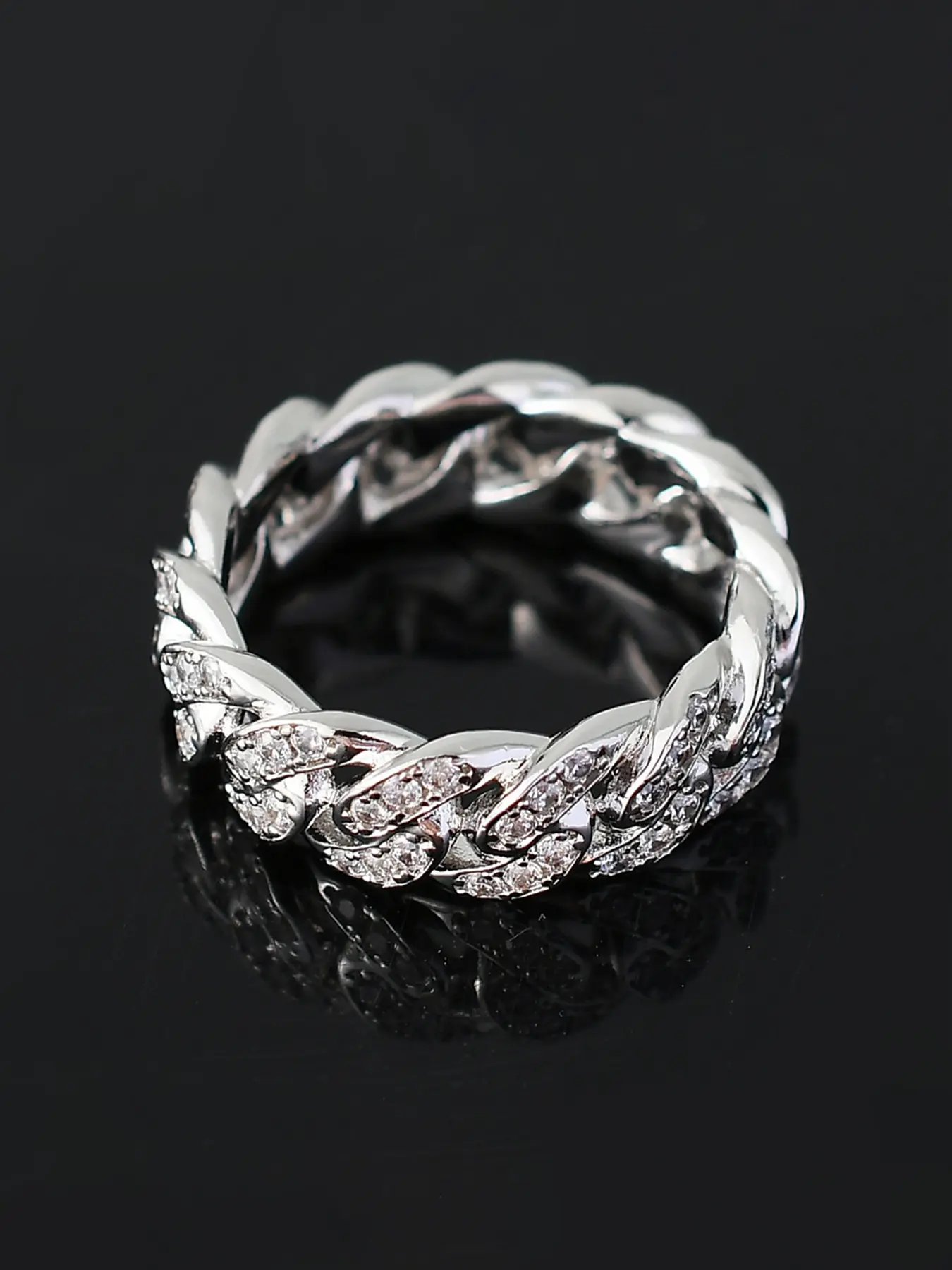 怐Double Row Zircon怑: Featuring a unique double row of zircon stones, this ring enhances your overall look with shimmering glamour.